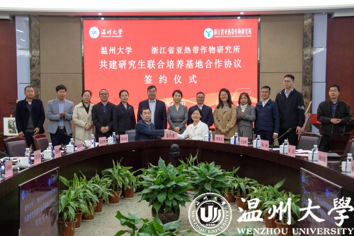 澳门银河官网 生命与环境科学学院院长阎秀峰和浙江省亚热带作物研究所所长陈秋夏代表双方签约。