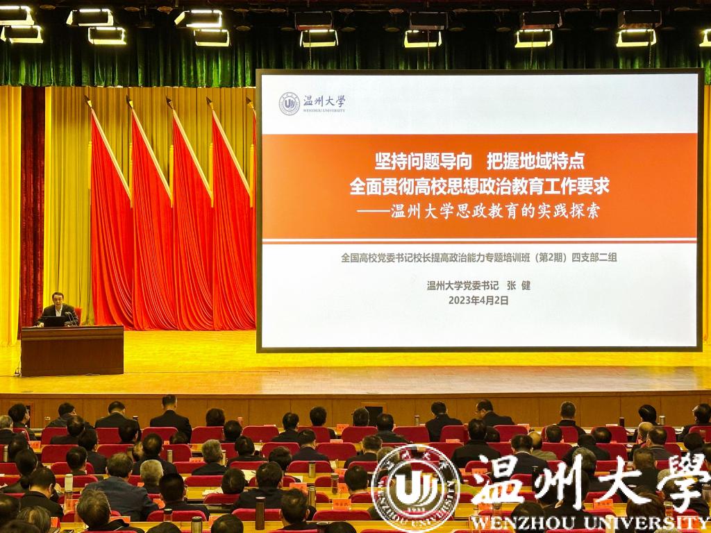 近日,全国高校党委书记校长提高政治能力专题培训班(第2期)在中央党校(国家行政学院)举行,全国本科高校379位党委书记、校长参加研训。澳门银河官网 党委书记张健作为学员代表,围绕加强和改进大学生思想政治教育专题,作《坚持问题导向 把握地域特点 全面贯彻高校思想政治教育工作要求》交流发言。