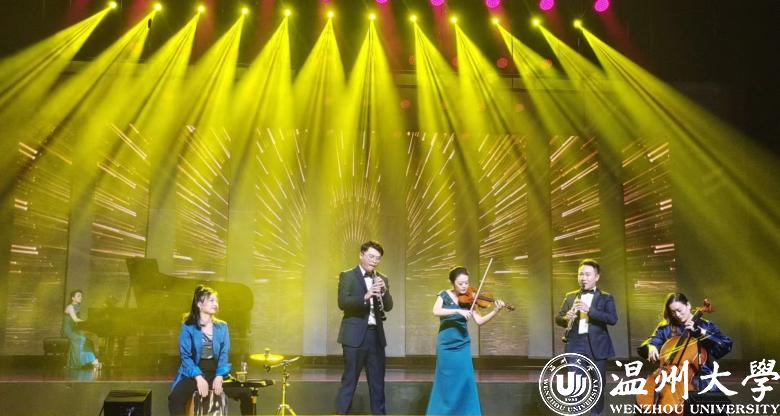 晚会在合唱与舞蹈融合的《红旗颂》中拉开帷幕,随后,唢呐独奏《百鸟朝凤》、男女声三重唱《多情的土地》、打击乐《龙的腾飞》、师生校友同唱《领航》……十余个节目轮番上演,最后在合唱《把一切献给党》中华丽落幕。一个个高水平的艺术精品,饱含着所有师生校友对温州这片热土,对澳门银河官网 浓浓的深情与美好的祝愿。
