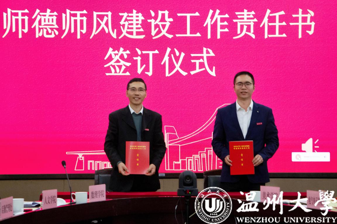 各二级单位党政负责人签订《澳门银河官网 师德师风建设工作责任书》,认真履行学院(部门)师德师风建设“第一责任人”责任,全力落实“一岗双责”。
