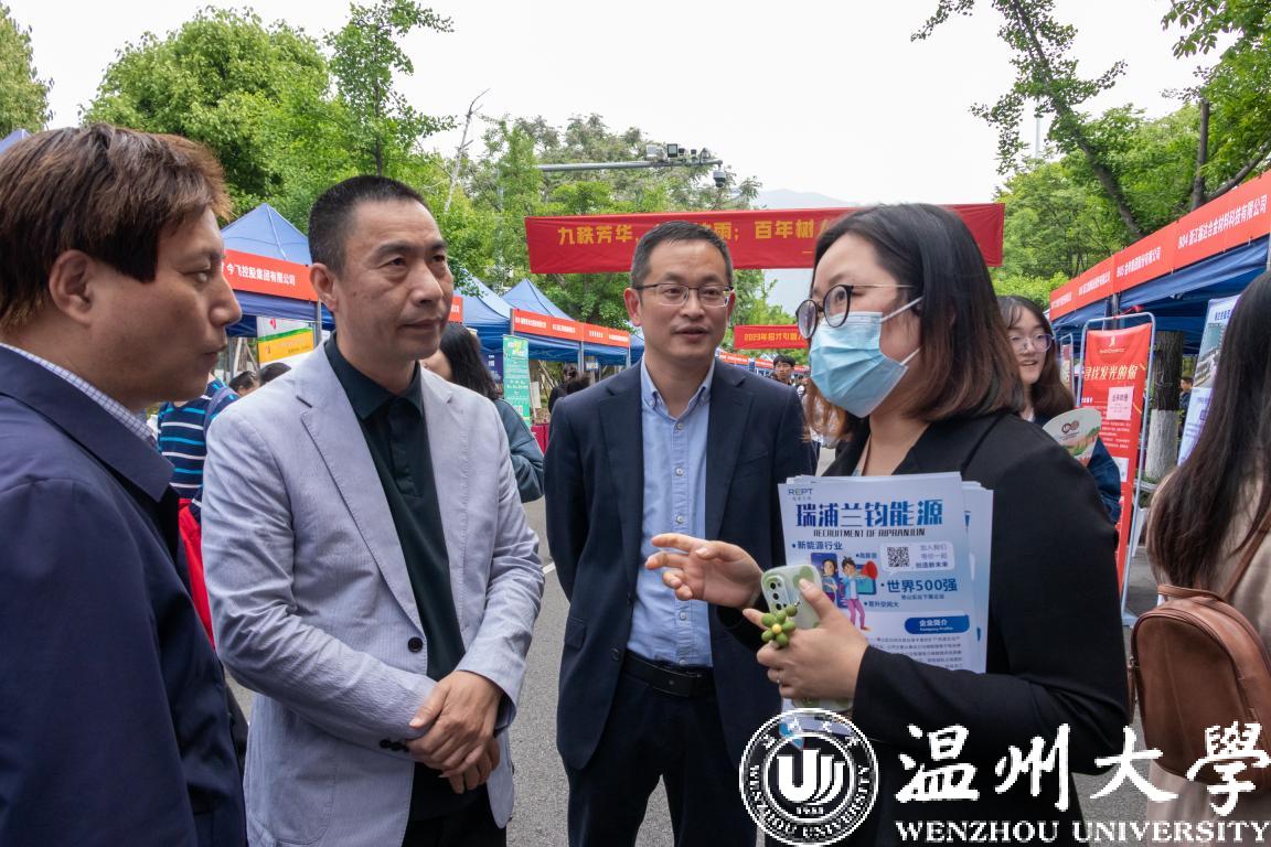 企业招聘负责人向澳门银河官网 党委委员、纪委书记杨林书,温州市人社局党组成员、副局长胡正长介绍企业招聘情况