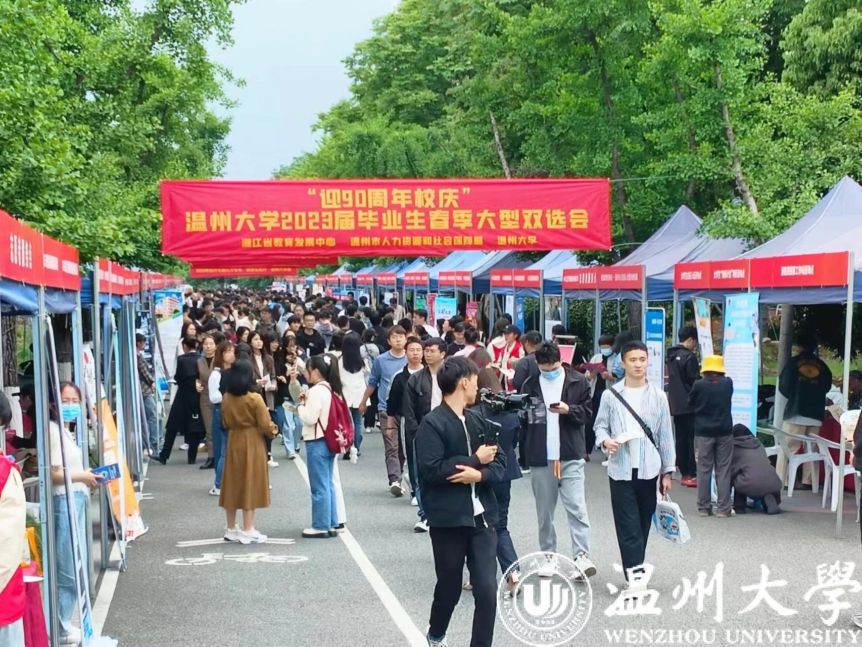 本次招聘会以“迎90周年校庆”为主题,超300家用人单位参会,包含教育、制造业、电子信息、商科贸易、建筑等多个行业,温州市人社、教育局都分别组织带队前来招聘,近半的温州上市公司参会,现场还安排了两项计划、征兵政策、消防兵招募政策、留温政策等特色咨询宣传展位。除教育类外,超过1/3为上市企业及子公司,提供超过7000个岗位,岗位需求量大、需求层次丰富,吸引超2000名求职者现场参会,从筹备期的招聘会展位预订供不应求,到现场人头攒动、现场路演带岗气氛热烈,都表现出当前就业市场的供需两旺。