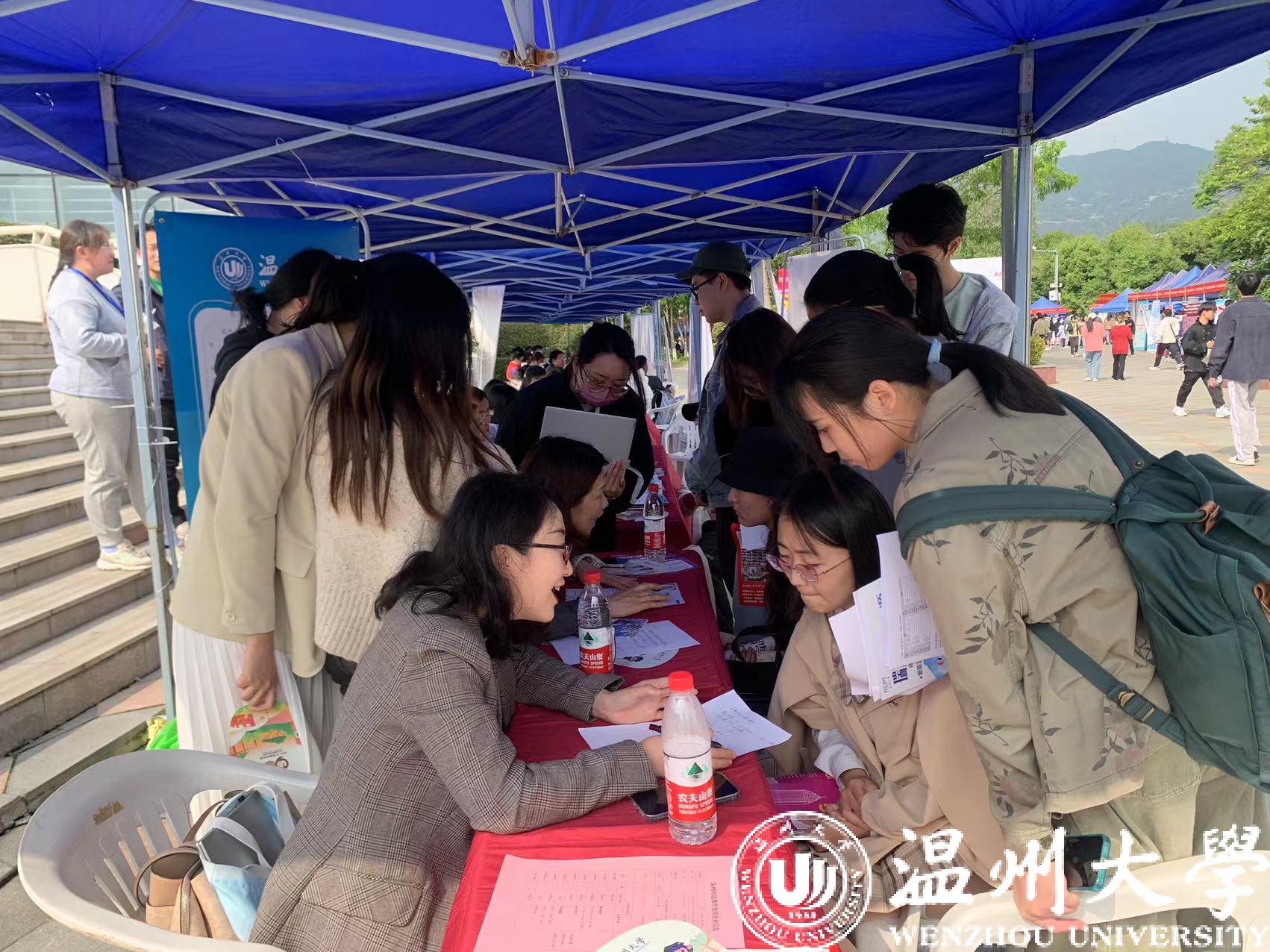 和同学们一样忙碌的,还有前来招聘的各单位工作人员,他们纷纷抛出橄榄枝,希望能吸引来更多优秀人才。青山控股、伟明环保、温州交运集团、银河 附属宏德幼儿园、苍南教育局等优质用人单位前早早就排起了长队。华峰、德力西、诚意药业、福达合金等企业开展现场路演直播,生动的引才方式受到企业和学生欢迎。温州长江汽车电子有限公司招聘负责人结束现场路演带岗后匆忙回到展位上,一直在为前来咨询的学生答疑释惑,言语中带着满满的诚意。“收了不少简历,效果挺不错的,已经约了几个应聘同学明天来公司现场面试”。