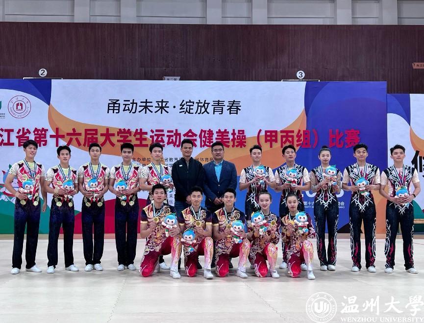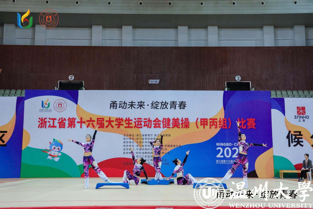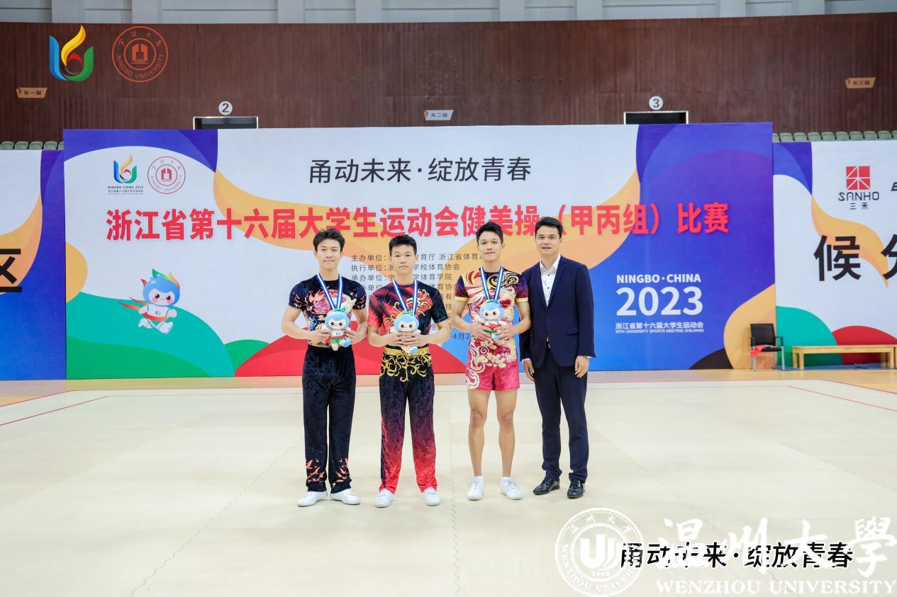 4月25-28日,浙江省第十六届大学生运动会健美操(甲丙组)比赛于宁波举行。澳门银河官网 队员获丙组男子单人操、三人操、五人自编有氧舞蹈第二名、甲组五人自编有氧踏板第四名;体育与健康学院方仕玮教练被评为优秀教练员,教师教育学院廖雨薇、吕欣桐、陈一帆和体育与健康学院陈昆甫同学被评为优秀运动员。