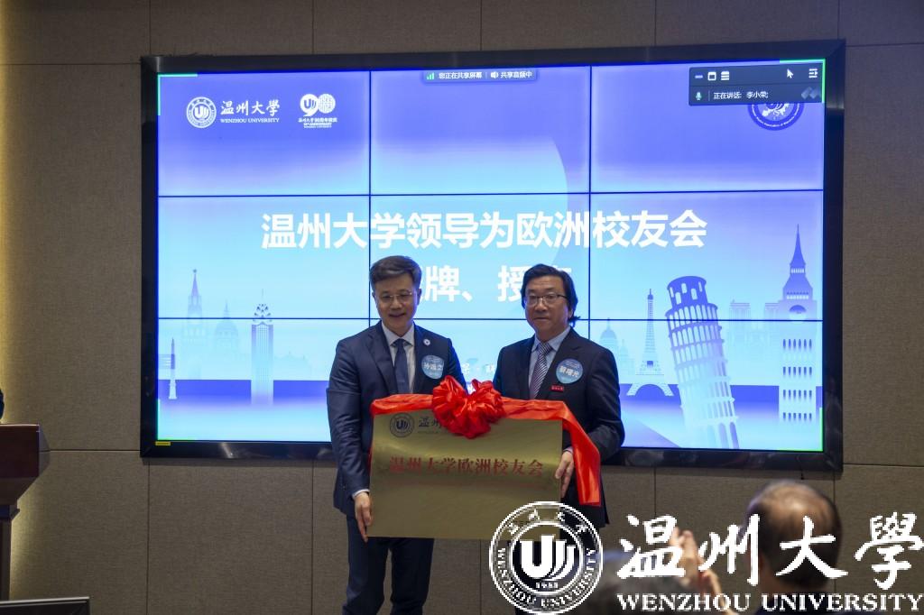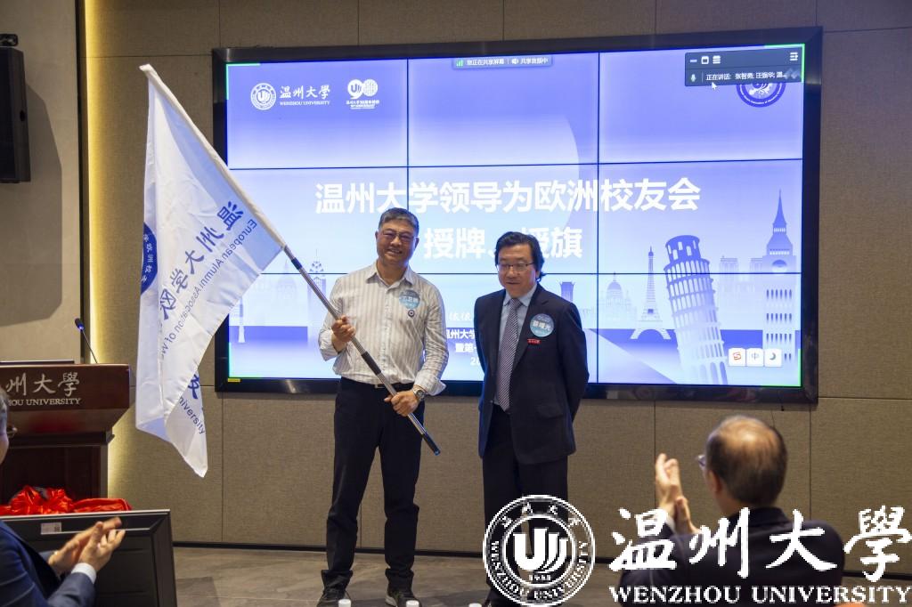大会审议通过了《澳门银河官网 欧洲校友会章程》和澳门银河官网 欧洲校友会第一届理事会建议名单。蔡曙光向欧洲校友会授牌、授旗。蔡曙光、陈宏毅向欧洲校友会顾问、会长、副会长、秘书长、副秘书长、理事颁发聘书。温州校友会会长吴东、北美校友会副会长章美华上台致贺词,意大利高校联盟发起者蔡茂生线上祝贺。