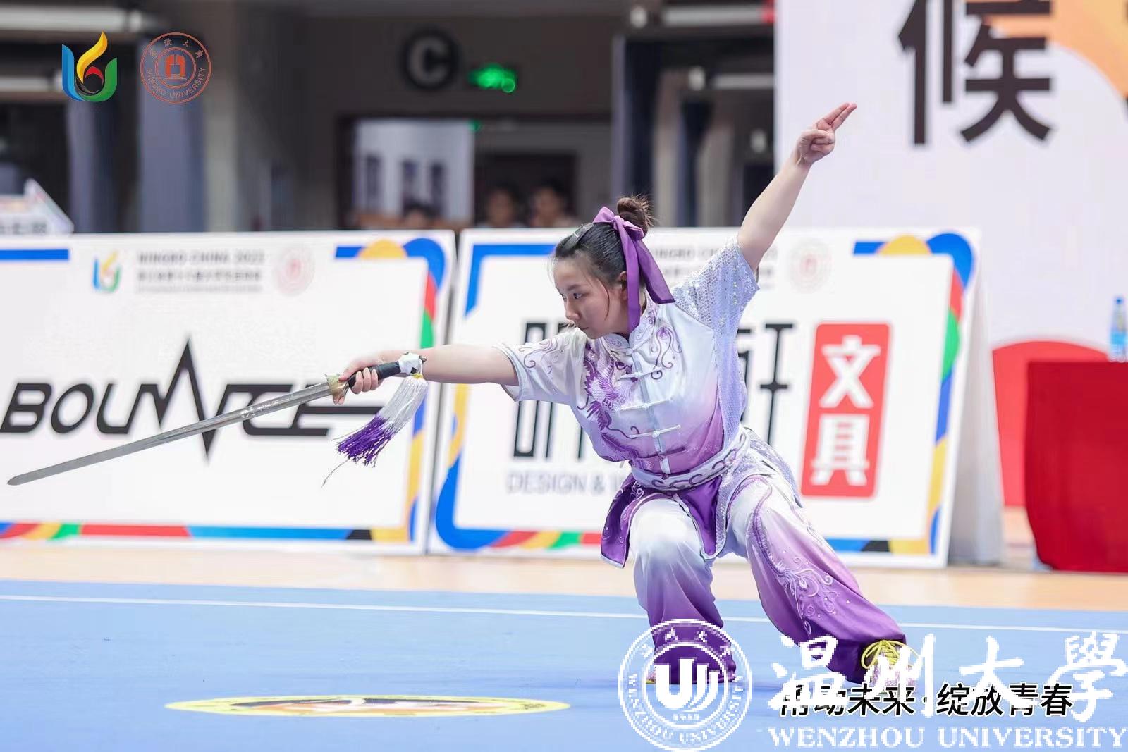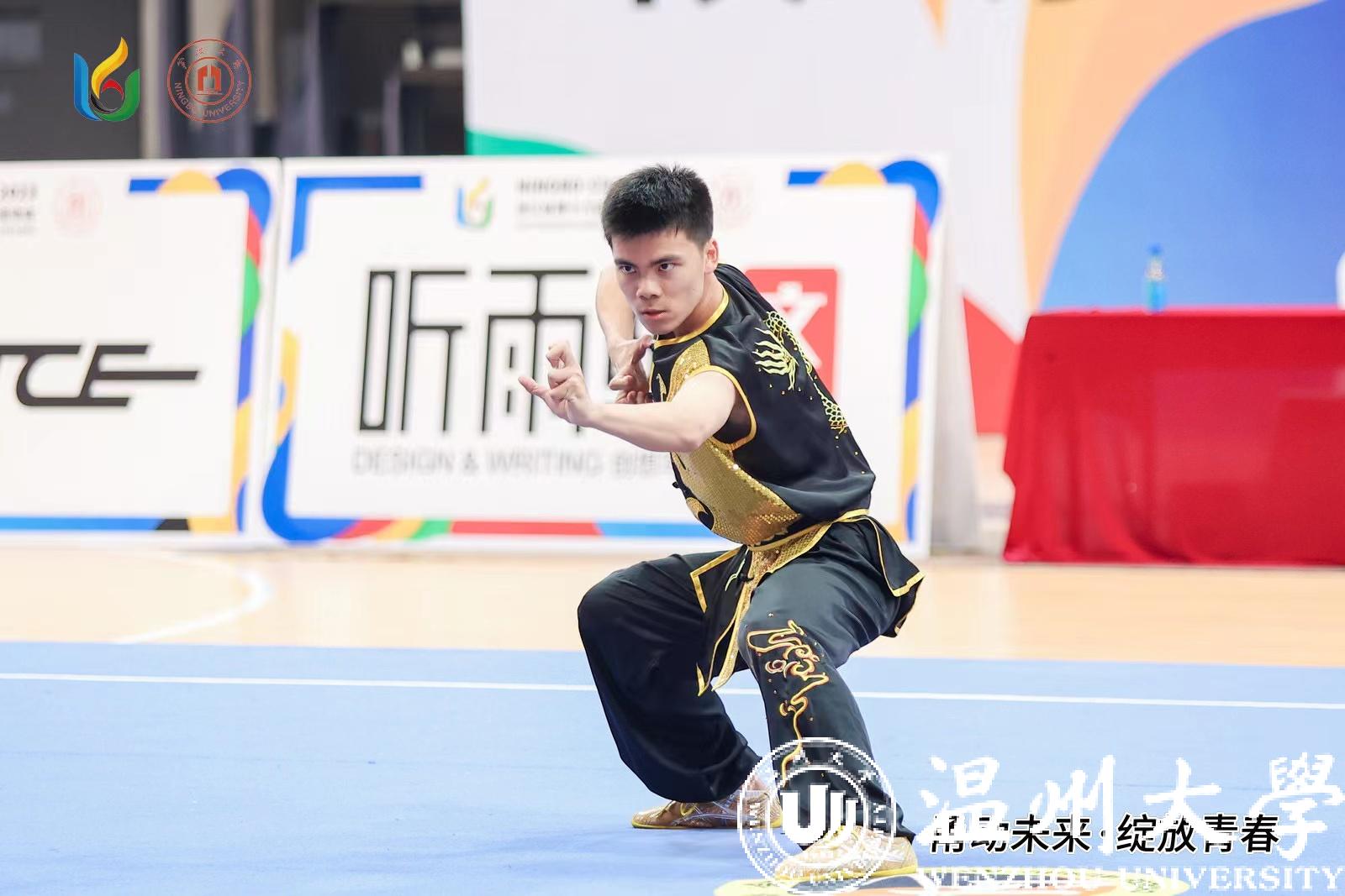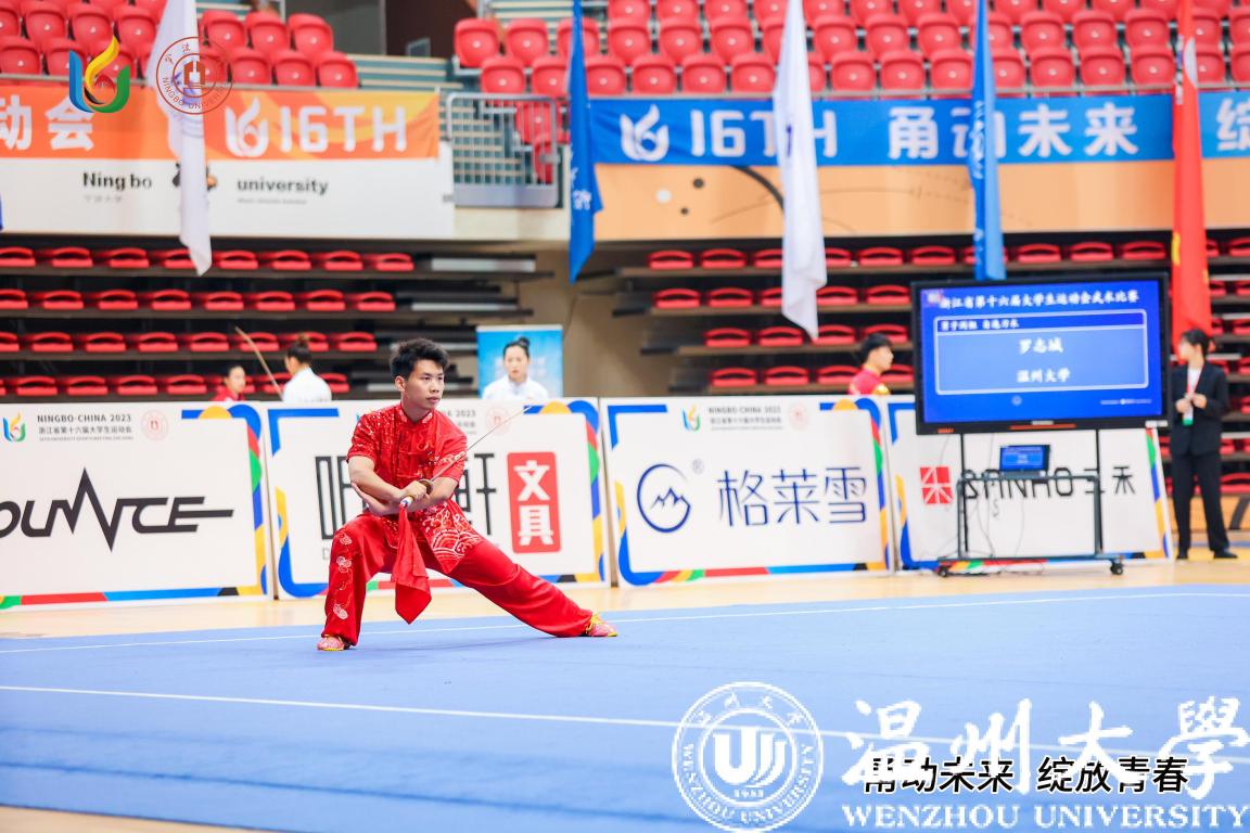 5月11-14日,浙江省十六届大学生运动会武术(甲、丙组)比赛在宁波大学举行。澳门银河官网 运动员顽强拼搏、喜获佳绩。体育与健康学院本科生张凯一同学获男子丙组自选棍术第二名,体育与健康学院研究生丁义萍、外国语学院杨丹妮荣获“优秀运动员”称号。