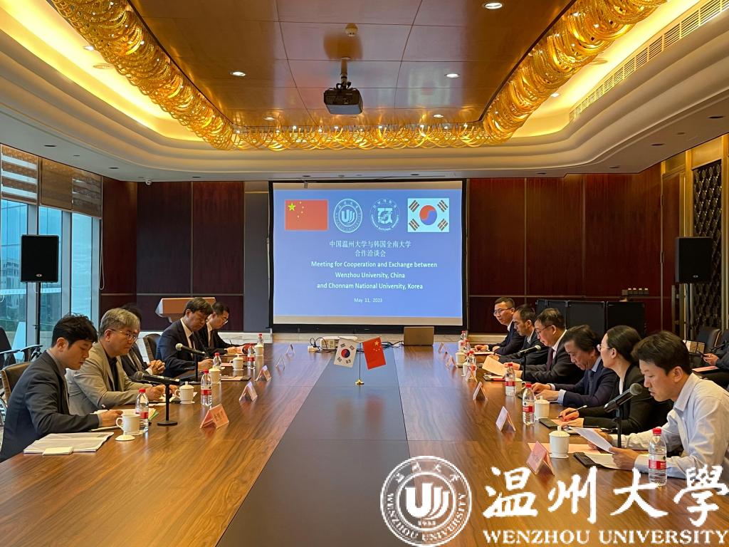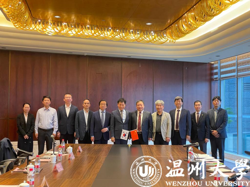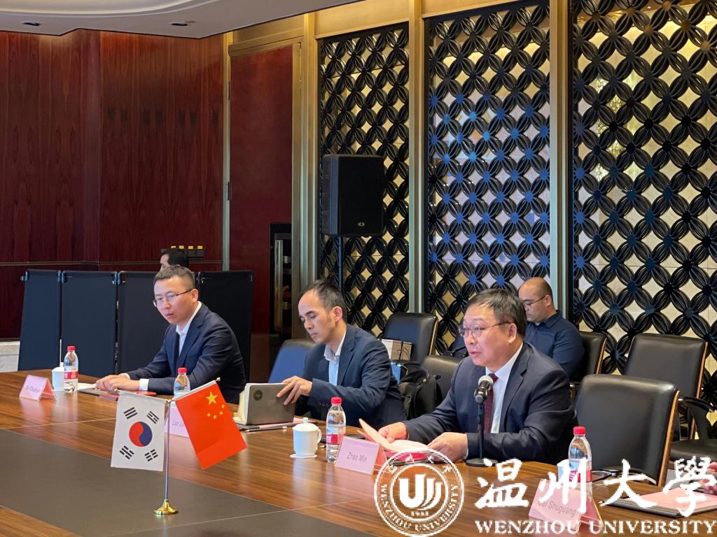 近日,韩国全南大澳门银河官网 长郑圣泽(JUNG Sungtaek)一行来校交流访问。校长赵敏、副校长蔡曙光出席座谈会。