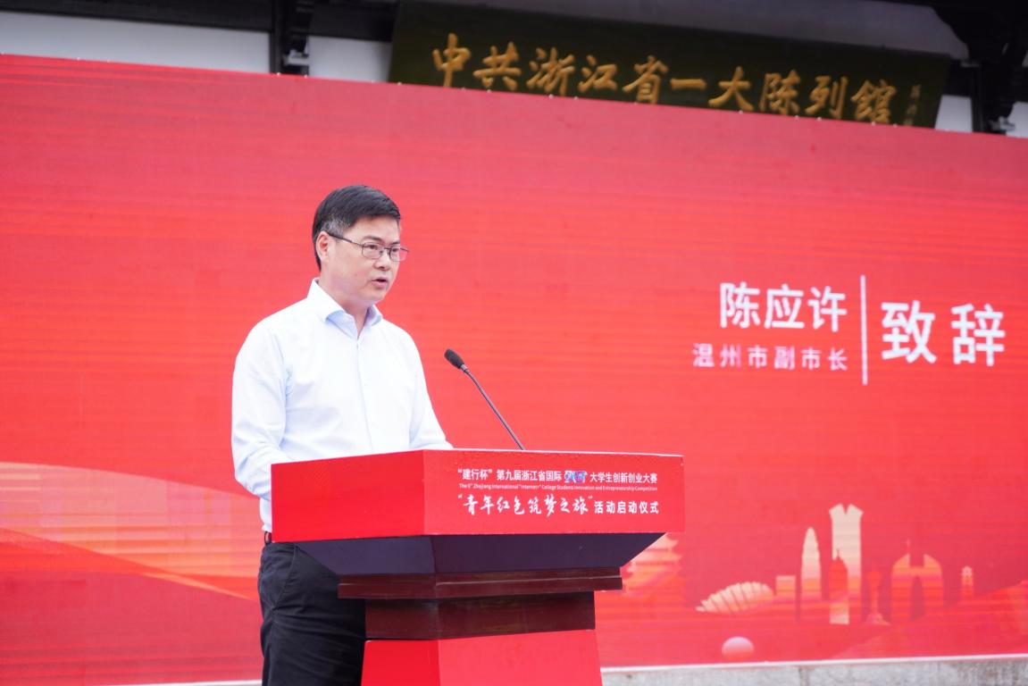 省教育厅二级巡视员、高教处处长吕华、温州市副市长陈应许、中国建设银行浙江省分行党委副书记、副行长杨辛、中共平阳县委书记章寿禹、澳门银河官网 校长赵敏分别致辞。与会嘉宾共同启动了第九届“青年红色筑梦之旅活动。
