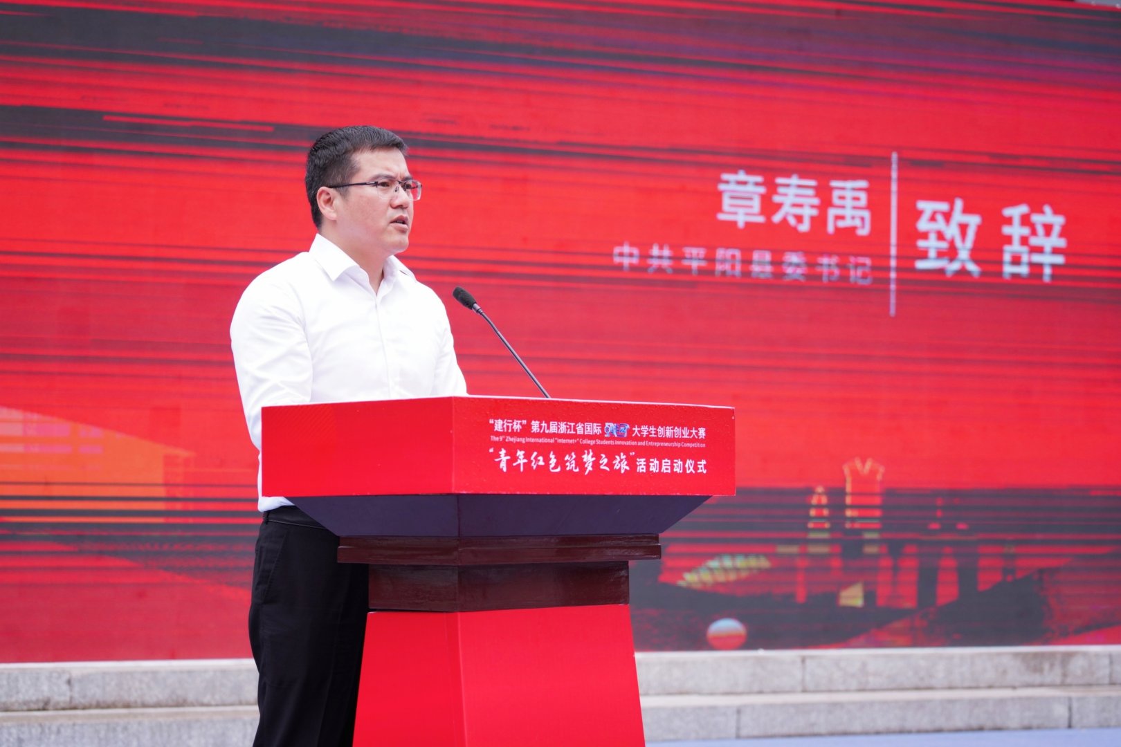 章寿禹致辞。他指出,平阳历来重视青年教育和青年人才引育,本次活动在平阳启动,必将助力浙江“红色根脉”得到更好的继承和发扬,必将有力推动平阳实现跨越赶超、加速发展。红动浙南的平阳,期待与广大青年共同筑梦,加速崛起的平阳,期待与广大青年共同成长,开放创新的平阳,期待与广大青年共创未来,宜居宜业的平阳,期待与广大青年共觅幸福。