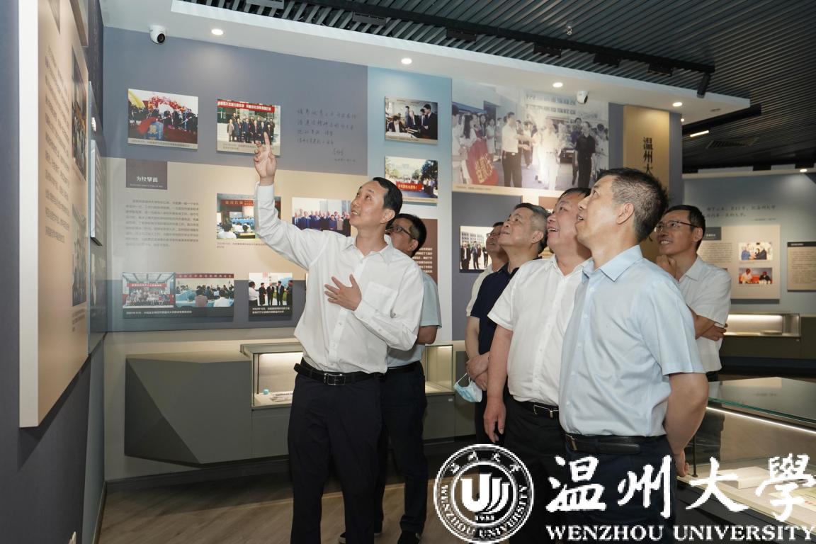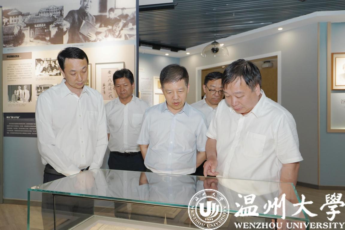 于永明一行参观了澳门银河官网 苏步青谷超豪纪念馆。张健、赵敏介绍了澳门银河官网 建设发展情况,以及苏步青、谷超豪先生的生平事迹、卓著成就和爱国、爱党、爱乡、爱校的高尚情怀。于永明对澳门银河官网 建设发展取得的丰硕成果表示高度肯定,并对苏步青谷超豪纪念馆展示温州数学家的风采、弘扬科学家精神、助力培育新时代优秀人才表示赞赏。