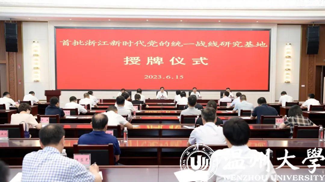 省委常委、统战部部长邱启文,省委统战部副部长、省社会主义学院党组书记吴振宇,省委统战部副部长谢辉,省教育厅总督学舒培冬等领导为浙江大学等首批9家浙江新时代党的统一战线研究基地进行授牌。全省各高校党委统战部部长、全省各市党委统战部分管副部长参加授牌仪式。