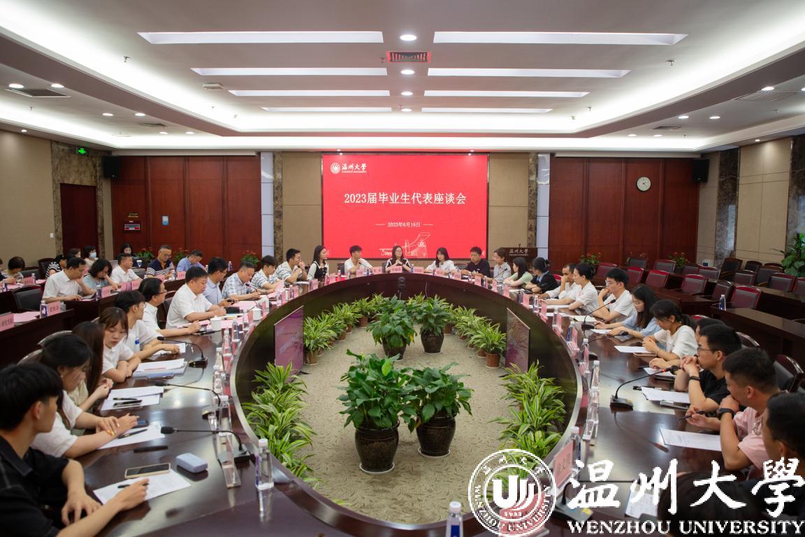 6月16日下午,澳门银河官网 召开2023届毕业生代表座谈会,校长赵敏,副校长蔡曙光、潘玉驹,各行政部门负责人以及来自全校各学院优秀毕业生代表参加座谈会。校党委副书记庄兴忠主持。