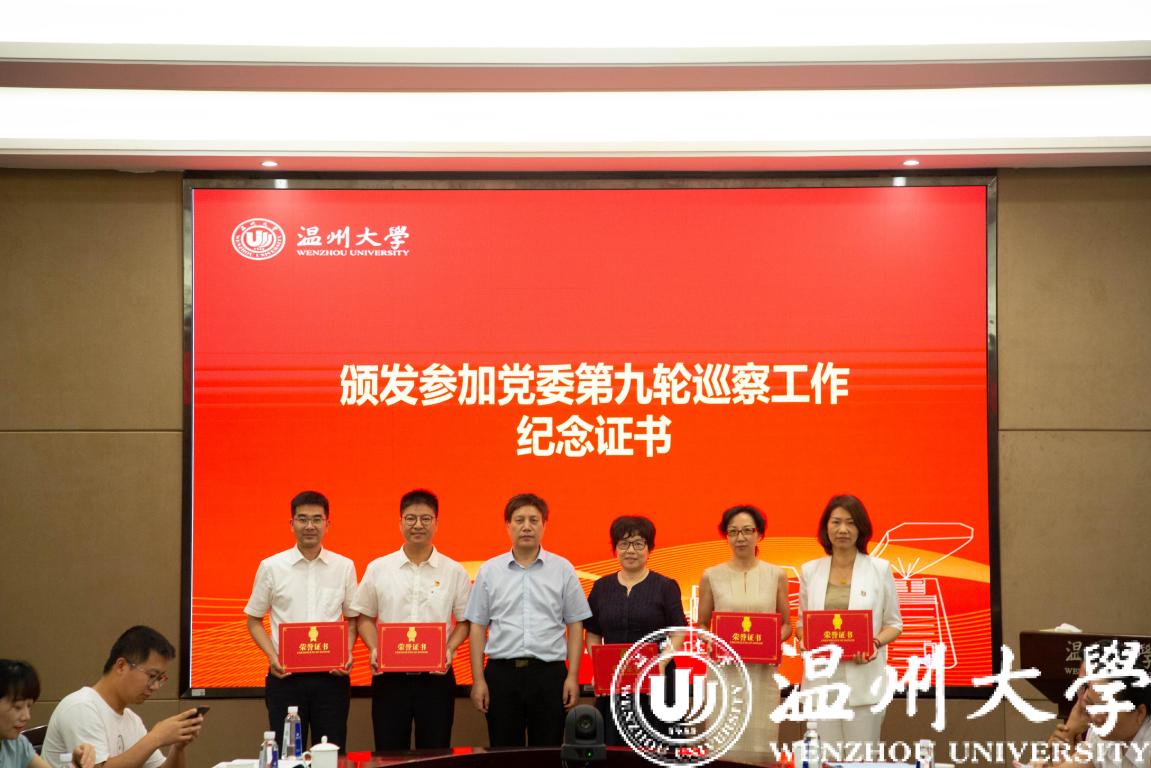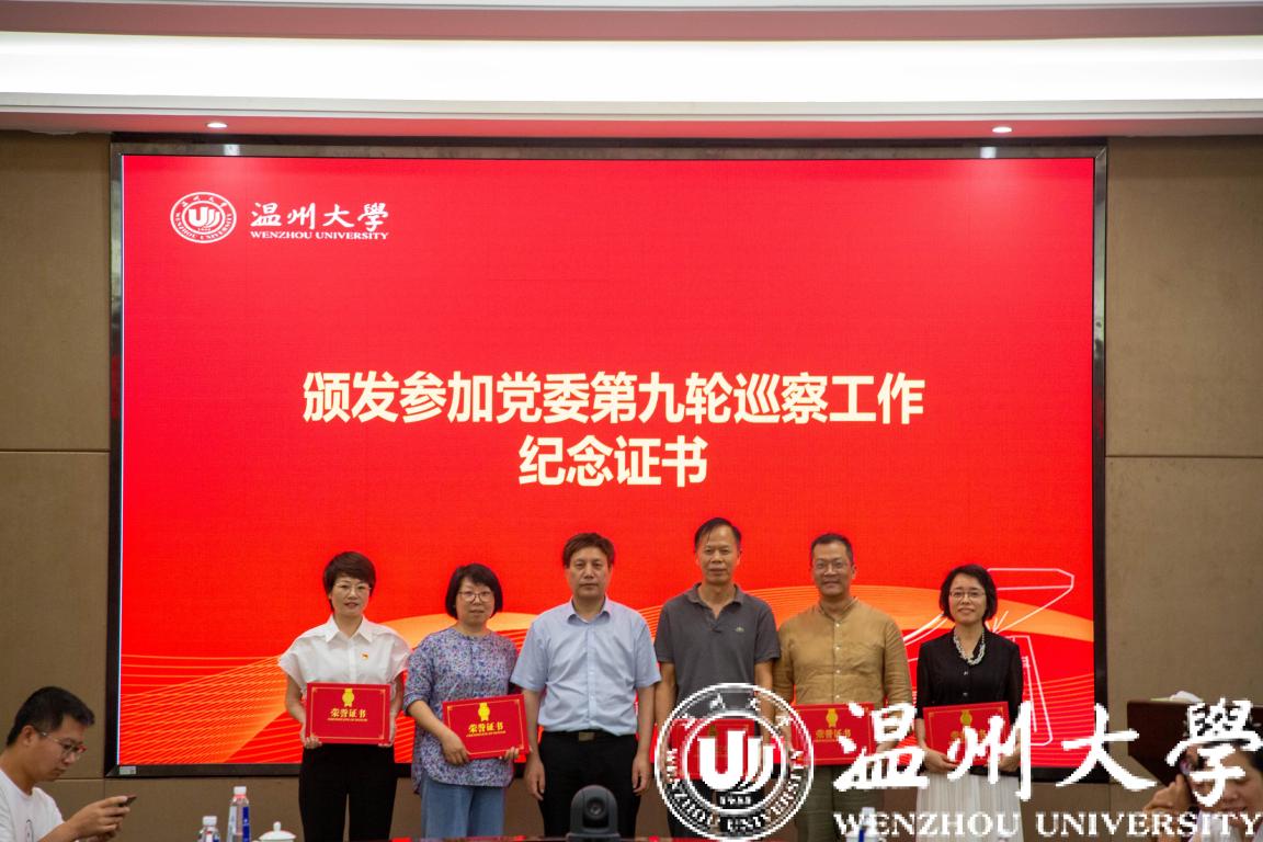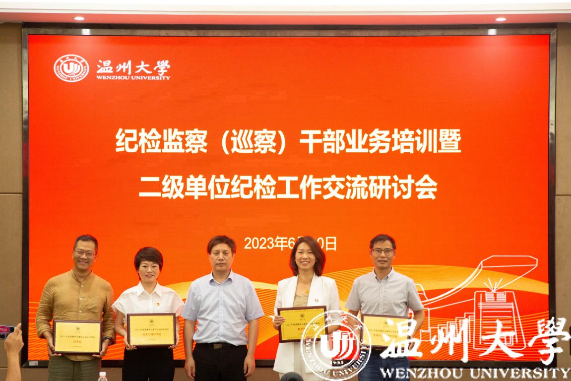 人文学院纪委书记魏一、数理学院纪委书记章志图分别就各自工作实际作二级单位纪检工作经验交流发言。会上还为澳门银河官网 首批清廉单元示范标杆单位,法学院、美术与设计学院、生命与环境科学学院、教育学院举行授牌仪式。为参加第九轮校内巡察工作的干部代表颁发纪念证书。