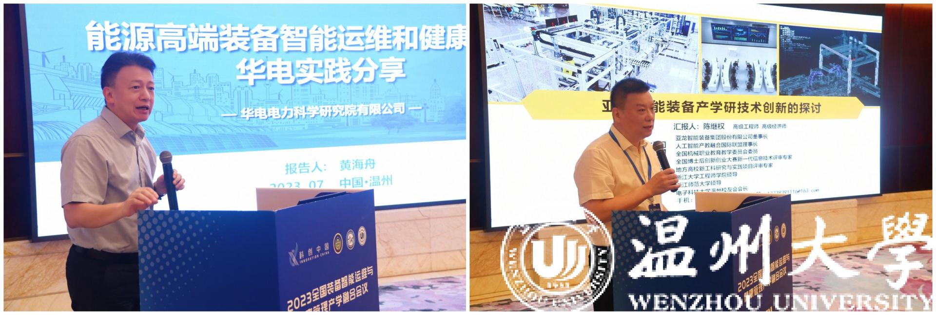 7月10日至12日,“科创中国”2023全国装备智能运维与健康管理产学融合会议在温州顺利召开。大会邀请了中国科学院、中国工程院顶尖人才多名。来自清华大学、北京理工大学、湖南大学、西南交通大学、上海交通大学、浙江大学、西安交通大学、北京航空航天大学、哈尔滨工业大学、华中科技大学、华北电力大学等数十所知名高校的专家,浙江大学温州研究院、兰州理工大学温州泵阀工程研究院、华电电力科学研究院、澳门银河官网 激光与光电智能制造研究院、澳门银河官网 平阳智能制造研究院等科研院所的科技精英,温州正泰集团股份有限公司、德力西集团有限公司、恒丰泰精密机械股份有限公司、亚龙智能装备集团股份有限公司、兴机电器有限公司等多家知名企业的领军企业代表,以及温州高校师生代表共250余人参加会议。