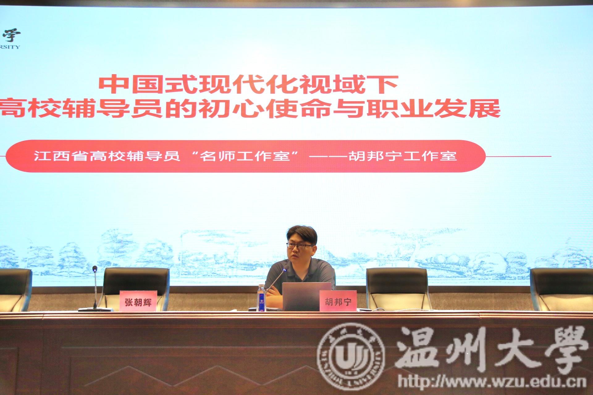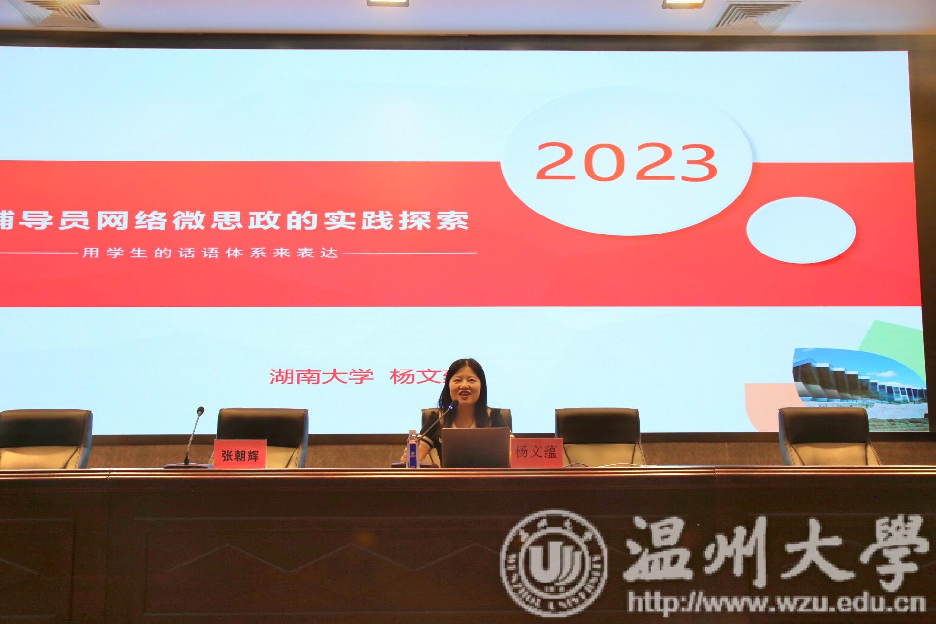本次思政工作研讨会邀请湖南大学杨文蕴老师和南昌大学的胡邦宁老师作主题讲座。杨文蕴老师是第十二届全国辅导员年度人物,第六届全国辅导员素质能力大赛二等奖获得者,也是首届湖南省网络教育名师,湖南省“网络思政名师工作室”领衔人。她讲座的题目是《辅导员网络微思政的实践探索——用学生的话语体系来表达》,从博客、QQ、朋友圈、公众号、短视频等出发探索网络思政的话语载体发展,指出善于使用“网言网语”,用学生习惯的网络语言体系,来开展网络思政工作,并结合自身运营辅导员思政公众号“蕴姐陪你写青春”的相关成果,举例进行了深入分析。胡邦宁老师是江西省高校铸牢中华民族共同体意识研究中心常务副主任,也是全国“最美辅导员”,曾参加了由习近平总书记主持召开的澳门银河官网 思想政治理论课教师座谈会。他主讲的题目是《中国式现代化视域下高校辅导员的初心使命与职业发展》,他从中国式现代化的内涵和本质出发,深入分析了当前中国式现代化背景下高等教育面临的危机与挑战,探讨了新时期当代青年学生的特征面貌,作为高校思政工作者所面临的困难和机遇。他指出中国式现代化视阈下的高校辅导员“即将迈入5.0时代”。