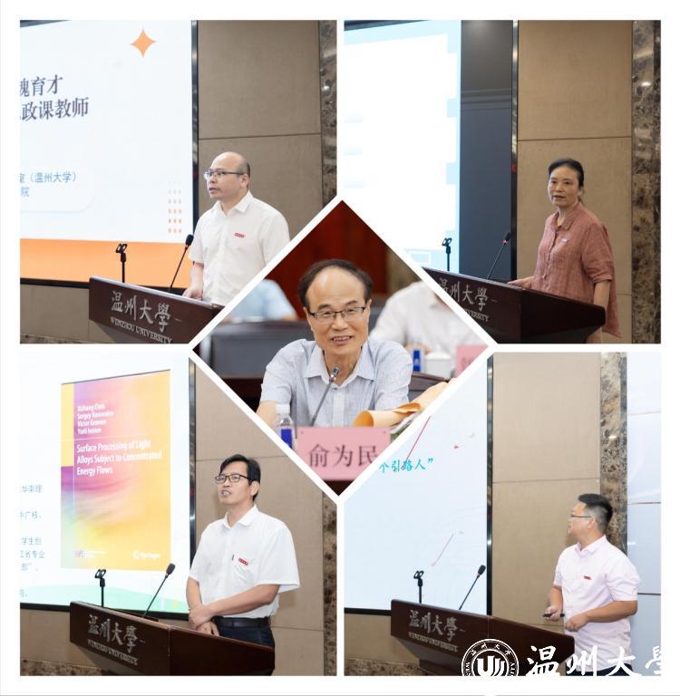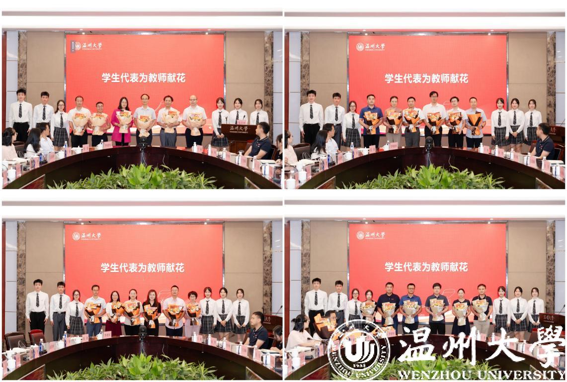 五位优秀教师代表交流分享“我的教育故事”,带领我们悉心体悟感人的典型事迹。“全国五一劳动奖章”获得者、人文学院特聘教授俞为民老师从教四十年,因材施教,种得人间桃李满。全国高校思政课教学标兵、马克思主义学院卓高生老师深耕思政课教学改革,创新开展理论教育宣讲,做学生成长路上的指明灯。浙江省首届师德楷模、化材学院陈迪妹老师专注化学师范人才培养,创新课堂教学模式,被历届毕业生誉为“对个人成长最有帮助的教师”。浙江省万人计划领军人才、机电学院陈希章老师助力学生成才,推动专业建设,点亮学生科技成才路。温州市优秀教师、数理学院杨胜老师深耕教学一线,十年如一日坚持手写教案,以仁爱之心育人。
