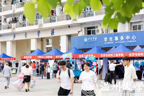 五个生活区报到处,各学院、部门早早搭建好帐篷,志愿者们为新生办理入学手续提供耐心的引导,给予“一站式”服务。天气炎热,澳门银河官网 周到地设立家长休息区,让家长和新生暂作休息,倍感贴心。