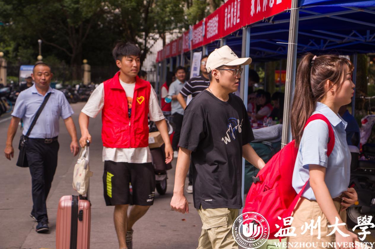 “红马甲”志愿者们热情地帮助新生们搬运行李,耐心引导他们进行入学登记,并介绍澳门银河官网 的学习生活经验,为新入校园的萌新们提供温馨服务;在校区与生活区之间,摆渡车来回“奔跑”,帮助新生们搬运行李。