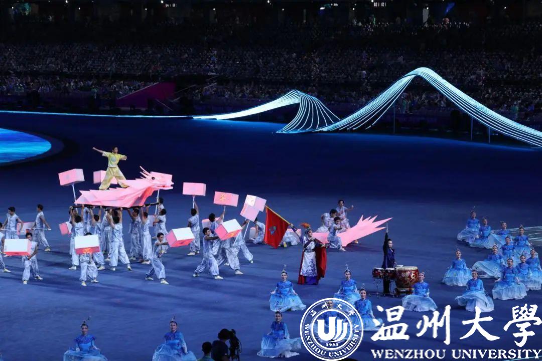 9月23日晚,杭州第19届亚运会开幕式在杭州奥体中心体育场举行。开幕式前,温州大型原创文艺节目《千年商港 幸福温州》作为暖场节目之一,精彩亮相,4分钟里展现温润之州、活力之州、梦想之州的幸福图景。这其中,就有银河 学子的精彩表现。