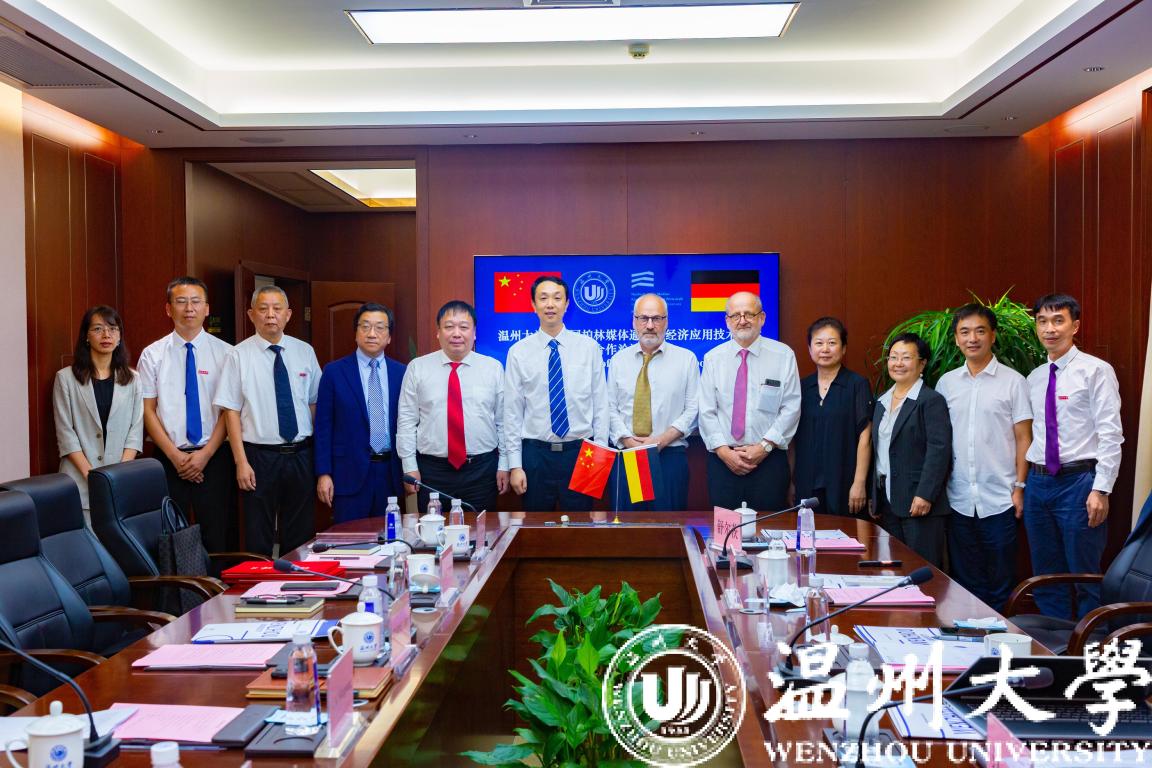 9月22日,德国柏林媒体、通信与经济应用技术大学(简称HMKW)代表团来访澳门银河官网 。代表团由校长舒尔茨·克劳斯-迪特尔(Schultz Klaus-Dieter)带队,校董事会主席兼行政副校长弗莱塔格·罗纳德(Freytag Ronald)、中国事务协调员冯爱民、江凌随行。