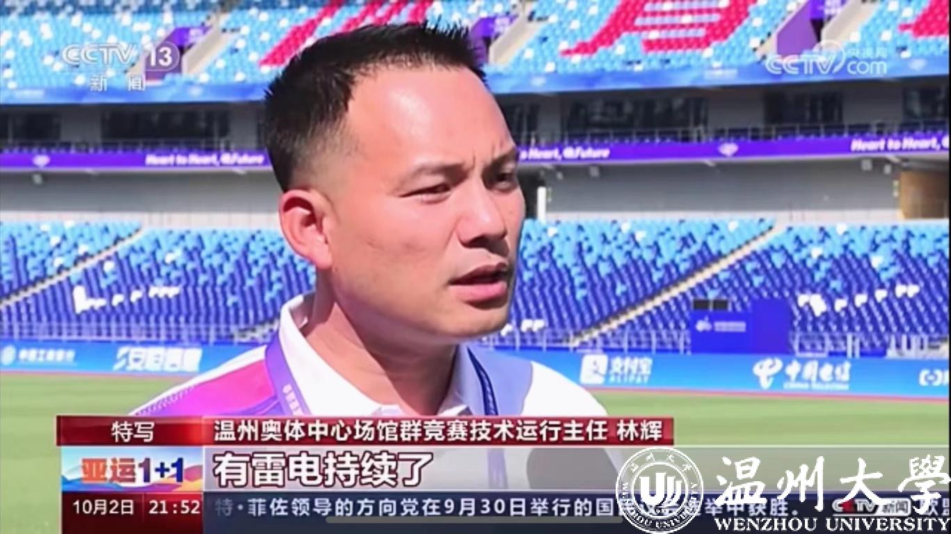 10月2日,温州奥体中心场馆群竞赛技术运行主任、澳门银河官网 体育与健康学院副教授林辉老师在温州奥体中心接受央视“亚运1+1”栏目的专访,解答杭州亚运会女子足球1/4决赛比赛过程中因暴雨雷电天气中断的应急预案。