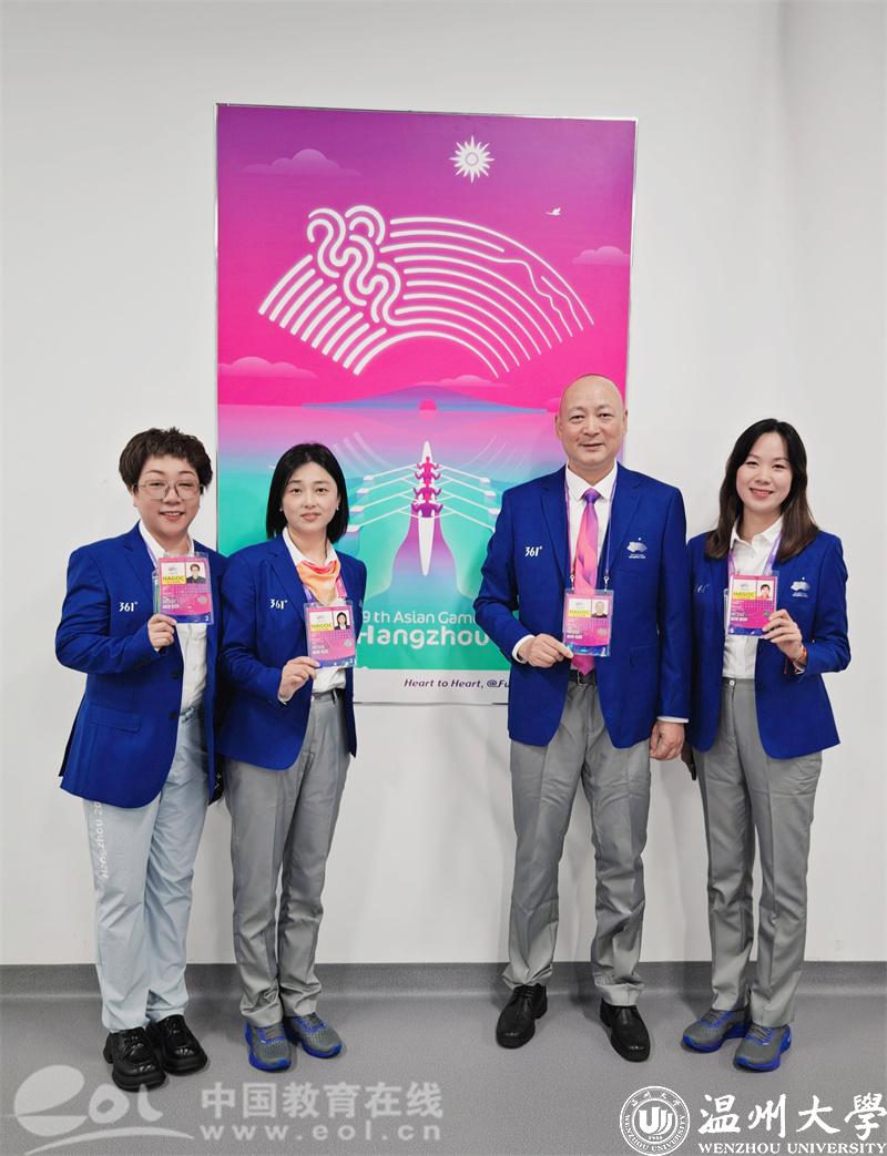 澳门银河官网 体育与健康学院院长张文健担任澳门银河官网 亚运会训练场训练组织主任;温州市足协副主席金川江担任温州体育中心竞赛技术运行主任(足球)、足球国家级裁判、银河 足球队教练林辉担任温州奥体中心竞赛技术运行主任(足球)。