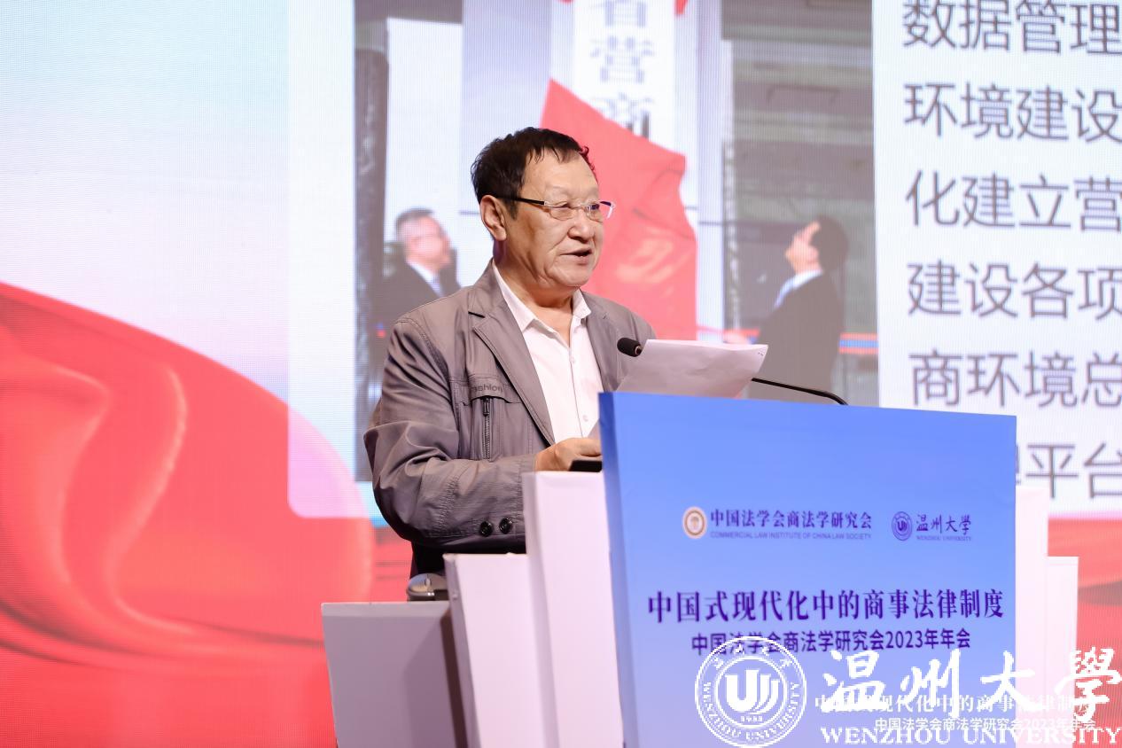 中国法学会党组成员、副会长兼秘书长张鸣总结了研究会过去的工作并表示感谢。他指出,今年中国法学会商法学研究会围绕公司法修订等具有重要理论价值和现实意义的问题进行探讨,是商法学研究会贯彻落实党的二十大精神的一个重要举措,充分体现了商法学研究会各位同仁心系国家、服务大局的使命担当。同时,他对商法学研究会的工作提出三点希望:一是深入学习贯彻习近平法治思想。紧紧围绕解决商法学研究与实践中的重大前沿问题,在解决商事法律制度与营商法治环境建设上面多下功夫,密切关注社会主义市场经济中的新情况、新问题。二是坚持守正创新,努力开创新时代商事法治建设新局面。商法学研究会应当紧紧抓住历史机遇,进一步发挥研究会智囊团、思想库、人才库的重要作用,从商法层面对重大前沿问题进行直接回应和深入研究,积极构建中国商法学自主知识体系,不断推动商法学理论的创新与发展。三是进一步加强人才队伍建设,不断挖掘商法学领域的青年人才。继续加大对商法学青年学者的支持力度,为青年学者提供学术交流和展示自我的平台,打造一支政治立场坚定、理论功底深厚、业务能力突出、作风素质优良的人才队伍。四是要深化商事制度改革,激发市场活力,坚持以良法促发展,用制度规则来固化改革成果。