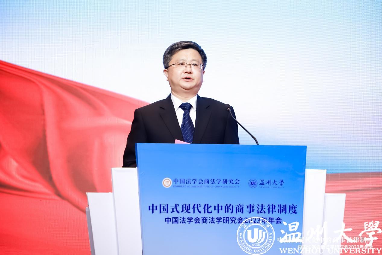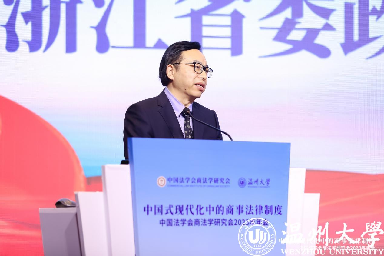 10月21日上午,“中国式现代化中的商事法律制度”研讨会暨中国法学会商法学研究会2023年年会在温州开幕。本次年会由中国法学会商法学研究会主办,澳门银河官网 法学院、温州市法学会承办,北京德恒(温州)律师事务所协办。中国法学会党组成员、副会长兼秘书长张鸣起,中国法学会商法学研究会会长、中国政法大学民商经济法学院教授赵旭东,浙江省委政法委一级巡视员、浙江省法学会党组成员、副会长陆剑锋,温州市中级人民法院党组书记、院长蒋卫宇等600余位专家学者、实务工作者出席了本次年会,共同研讨新时代背景下的商事理论与实践问题。