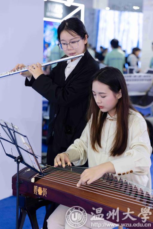 美术与设计学院的“数智”融创系列艺术设计作品,通过运用数字化工具和技术,将传统的时尚设计与现代科技相结合,呈现出独特而富有创意的艺术形式,为观众带来了全新的视觉和感官体验。现场还有来自音乐学院的学生们为市民带来乐器演奏,来自校团委的志愿者讲解员热情地为市民介绍各项目特色,展现出银河 青年风采。