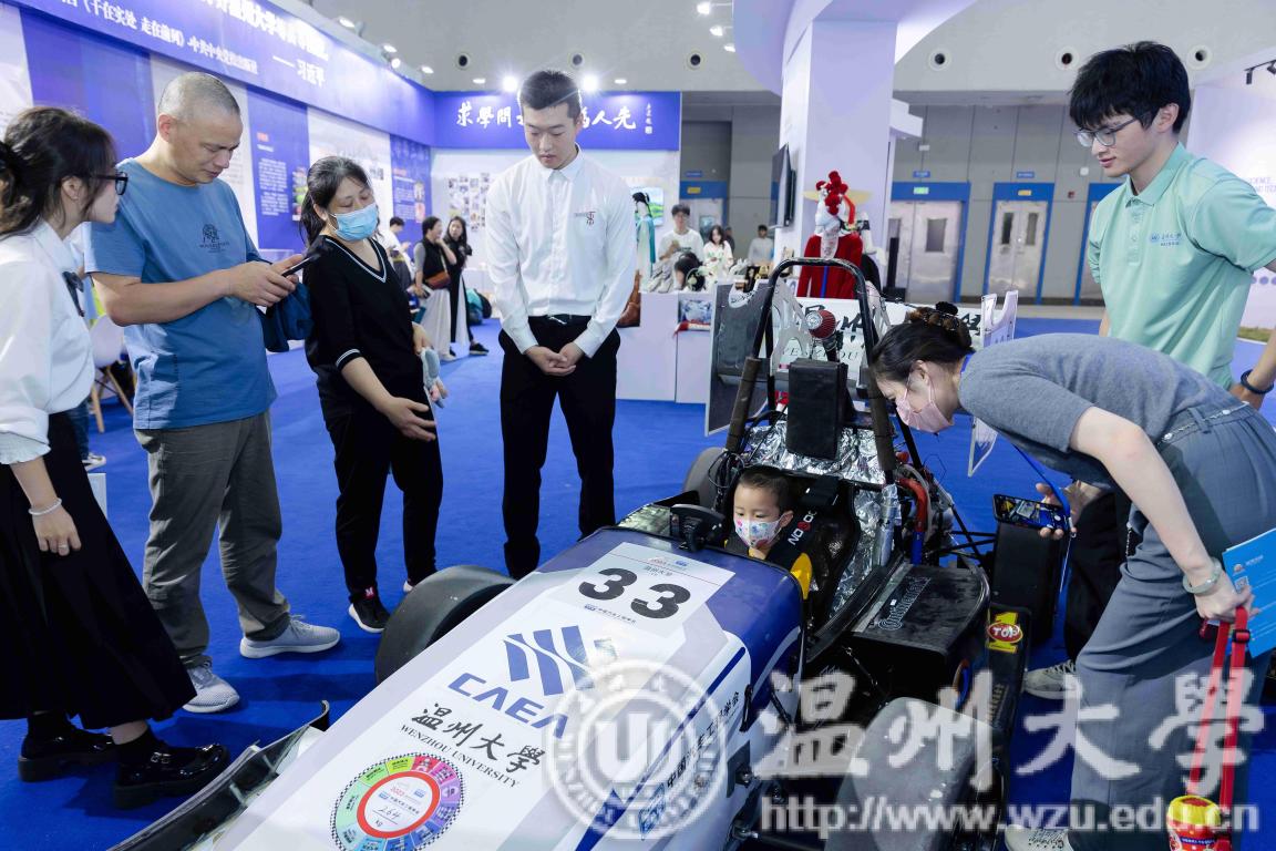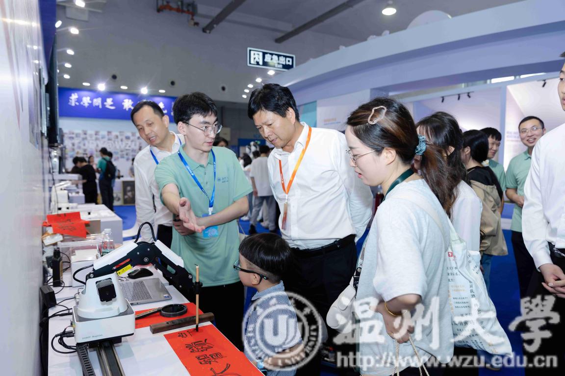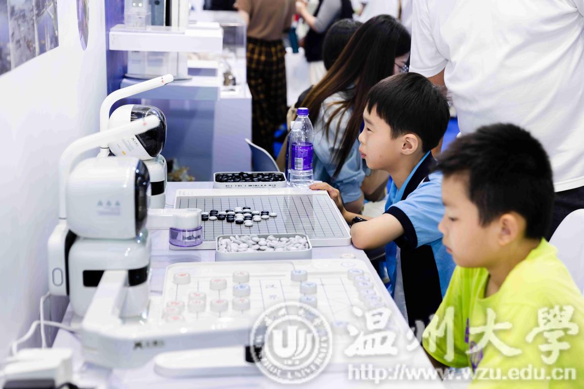 “快看!那个机器人会用毛笔写字,还有个机器人会下棋!”“哇,这辆赛车好酷!”……机电工程学院师生自主研发的魔术师书法机器人、Robocon投环机器人和疾风车队赛车,计算机与人工智能学院研发的动作捕捉系统,澳门银河官网 元宇宙与人工智能研究院研发的VR展示-温州朔门古港及宋代园林和下棋机器人等作品科技感满满。