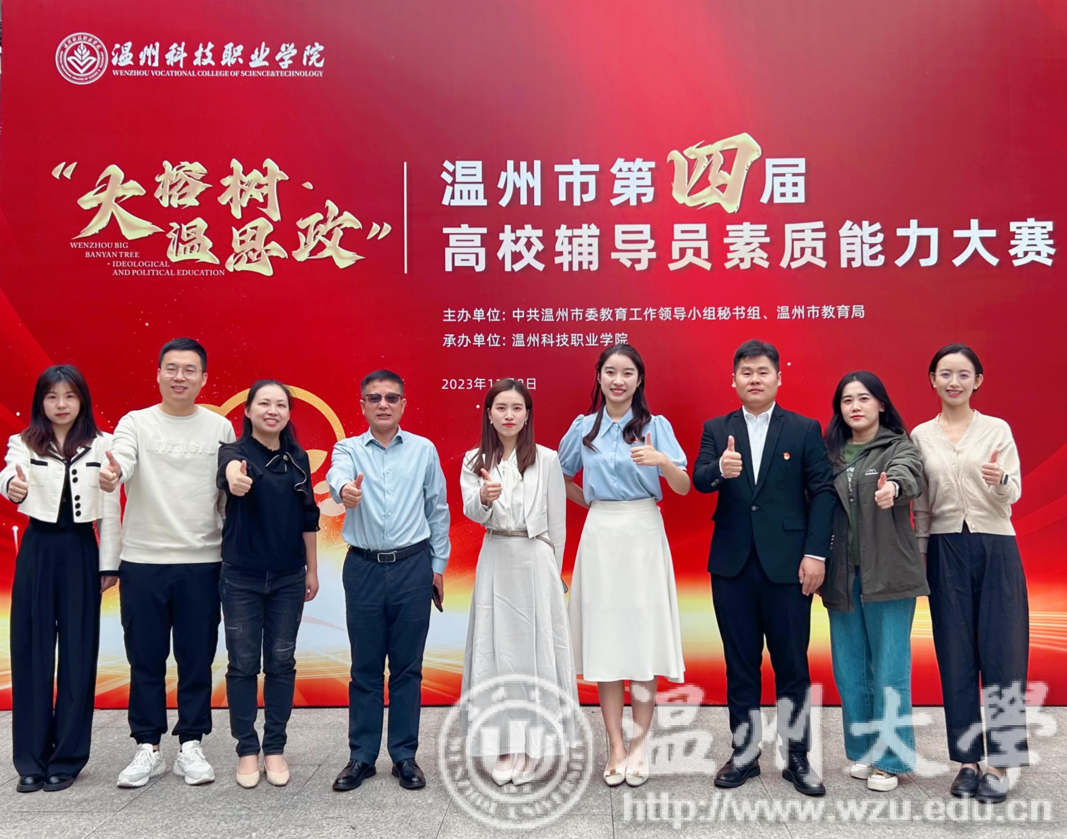 11月8日,温州市第四届高校辅导员素质能力大赛在温州科技职业学院举行,经过激烈角逐,澳门银河官网 机电工程学院辅导员徐琬莹荣获一等奖和案例研讨单项奖,法学院辅导员黄素素荣获二等奖,人文学院辅导员刘炳林荣获三等奖,澳门银河官网 荣获温州市第四届高校辅导员素质能力大赛优秀组织奖。