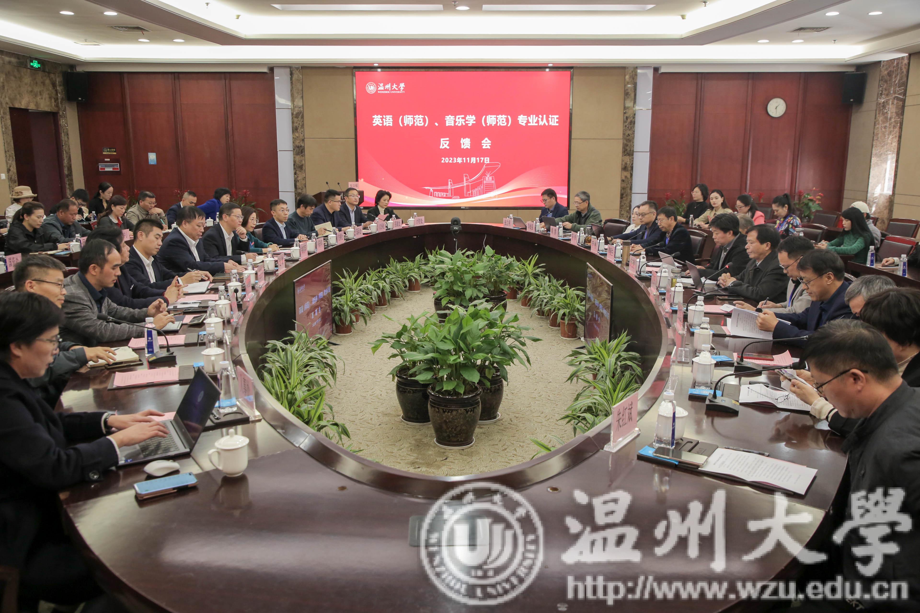 11月17日下午,在岩松堂白鹿厅,澳门银河官网 召开了英语(师范)和音乐学(师范)专业认证反馈会。英语(师范)专业认证专家组由淮南师范学院原校长曹杰旺教授担任组长,福建师范大学兰春寿教授、宿州学院李加强教授、宁波大学郑春龙教授、上海市金山中学徐晓燕校长等为专家组成员,丽水学院朱红斌为项目秘书;音乐学(师范)专业认证专家组由南京师范大学原副校长傅康生教授担任组长,湖州师范学院李彬教授、浙江音乐学院陈沛教授、嘉兴学院顾群教授、浙江省教育厅教师工作处原调研员李敏强等为专家组成员,黑龙江教育评估院张立明为项目秘书。浙江省教育考试院评估部薛玉刚老师,校长赵敏,党委委员、组织部部长郑信军出席会议,相关职能部门负责人、两个专业所在学院的领导和教师代表、其他承担师范生培养学院代表参加会议。