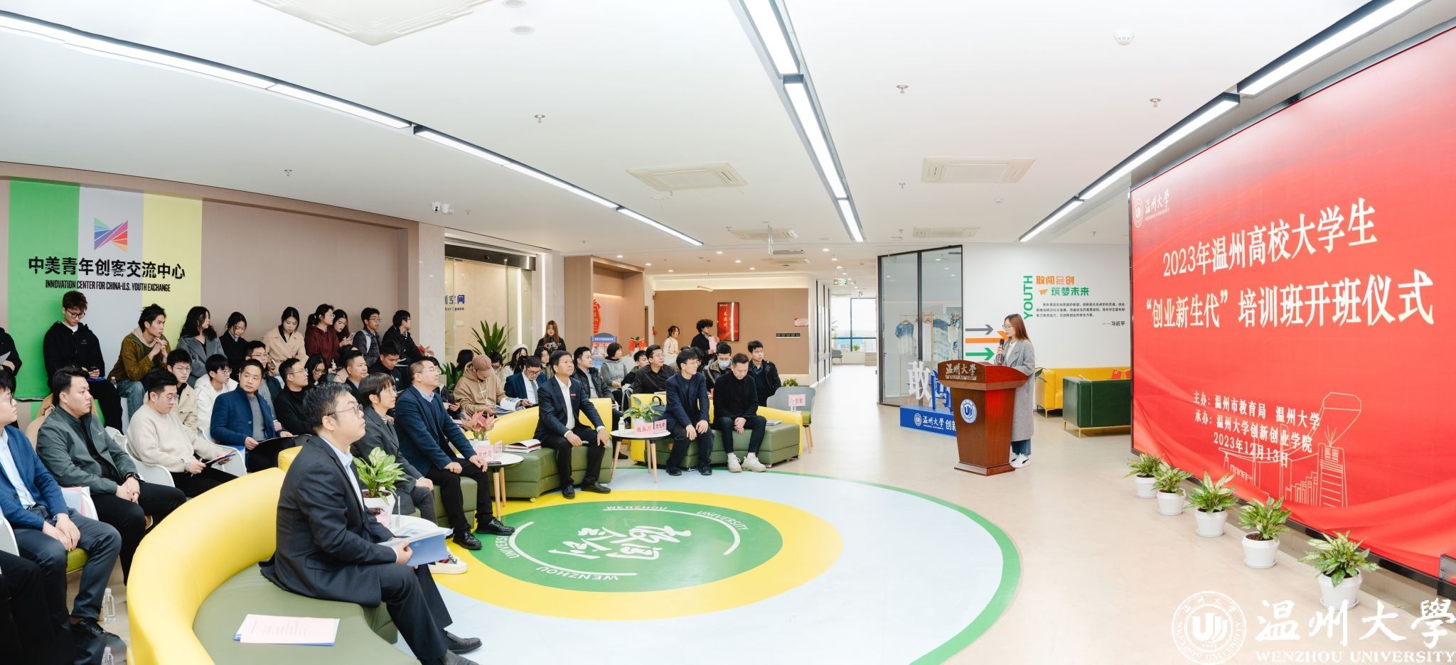 为进一步弘扬温商文化、传承温商精神,培养与社会发展趋势相适应的企业接班人,助力温州下一代企业家健康成长,12月13日,温州市教育局携手澳门银河官网 于澳门银河官网 举行2023年温州高校大学生“创业新生代”培训班开班仪式。澳门银河官网 党委副书记庄兴忠、温州市教育局高教处处长吕信恩出席活动,温州商学院教务部、管理学院、澳门银河官网 创新创业学院相关负责人、各行业的优秀创业导师以及来自温州11所高校的30名创二代大学生。