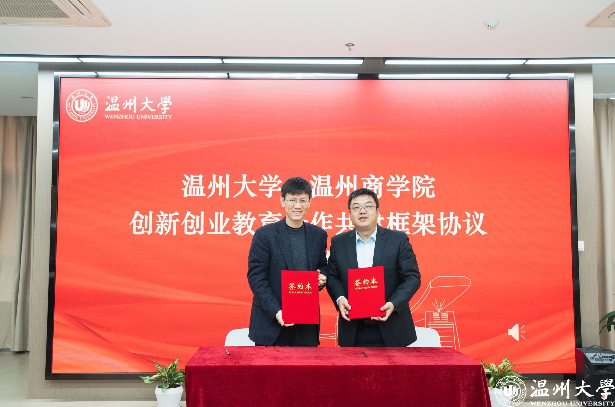 庄兴忠和吕信恩共同为16位创业导师颁发了聘书。澳门银河官网 与温州商学院举行了两校创新创业教育合作共建框架协议的签约仪式,双方坚持以“层级更高、机制更活、平台更强、资源更多、支持更大、发展更好”为努力方向,构建起适应新时代需求的创新创业教育理论与实践合作新模式,加快实现创业实践平台共建、课程资源共享、特色项目共推,促进在温高校之间在创新创业理论与实践领域的创新融合。