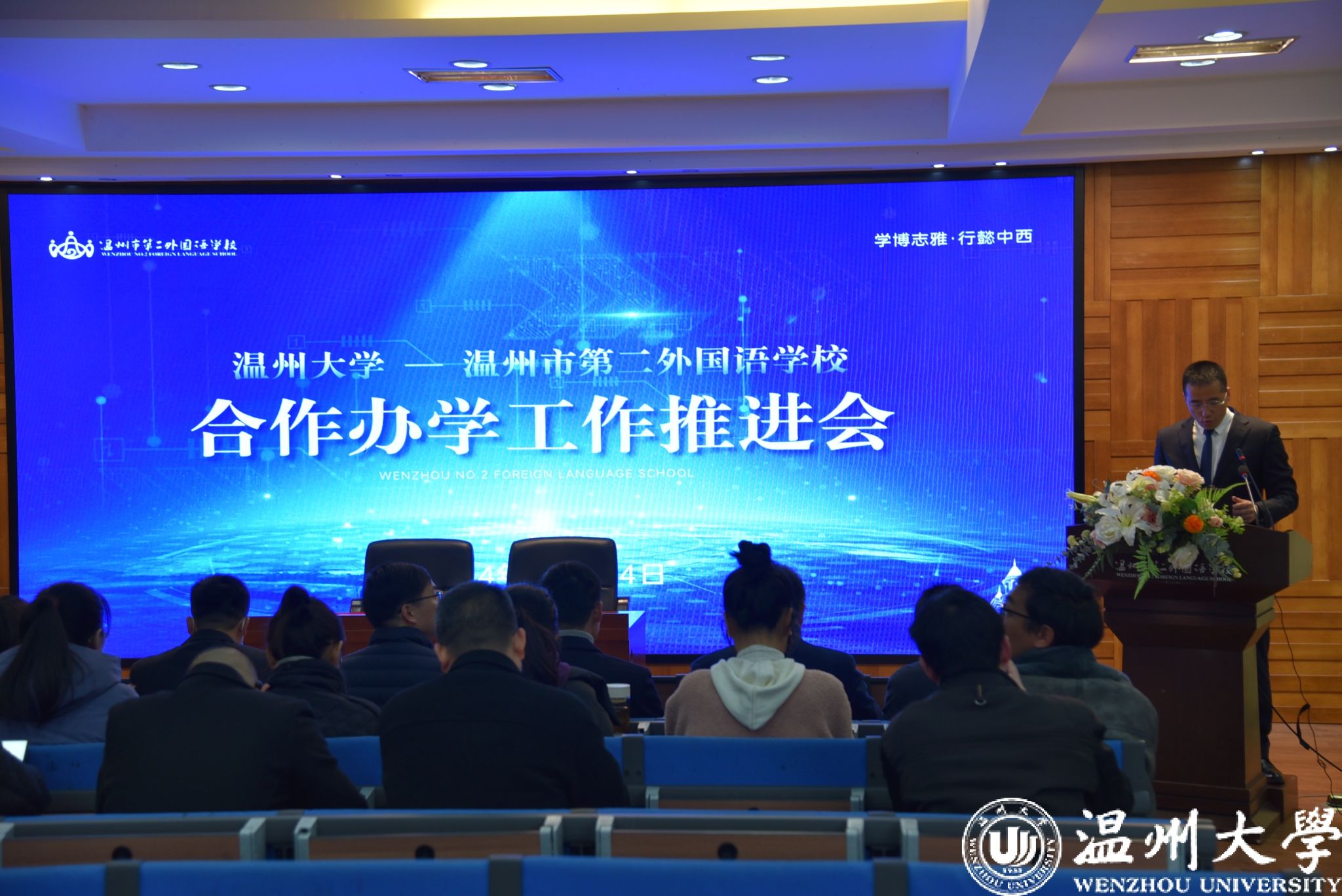 3月4日上午,澳门银河官网 ——温州市第二外国语澳门银河官网 合作办学工作推进会召开。温州市教育局领导,澳门银河官网 地方合作处、外国语学院、苏步青学院、组织部相关负责人,温州市第二外国语澳门银河官网 领导参加。