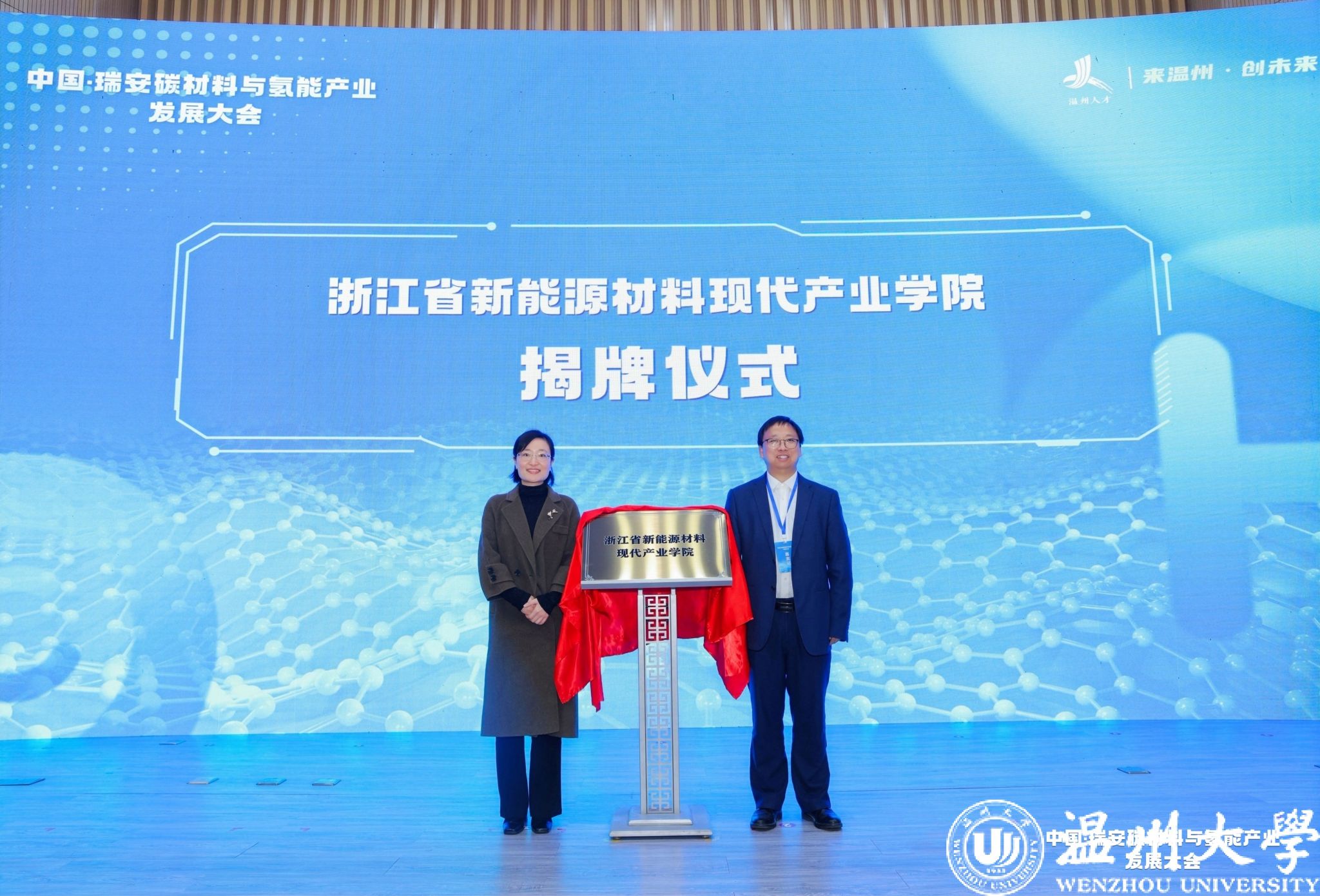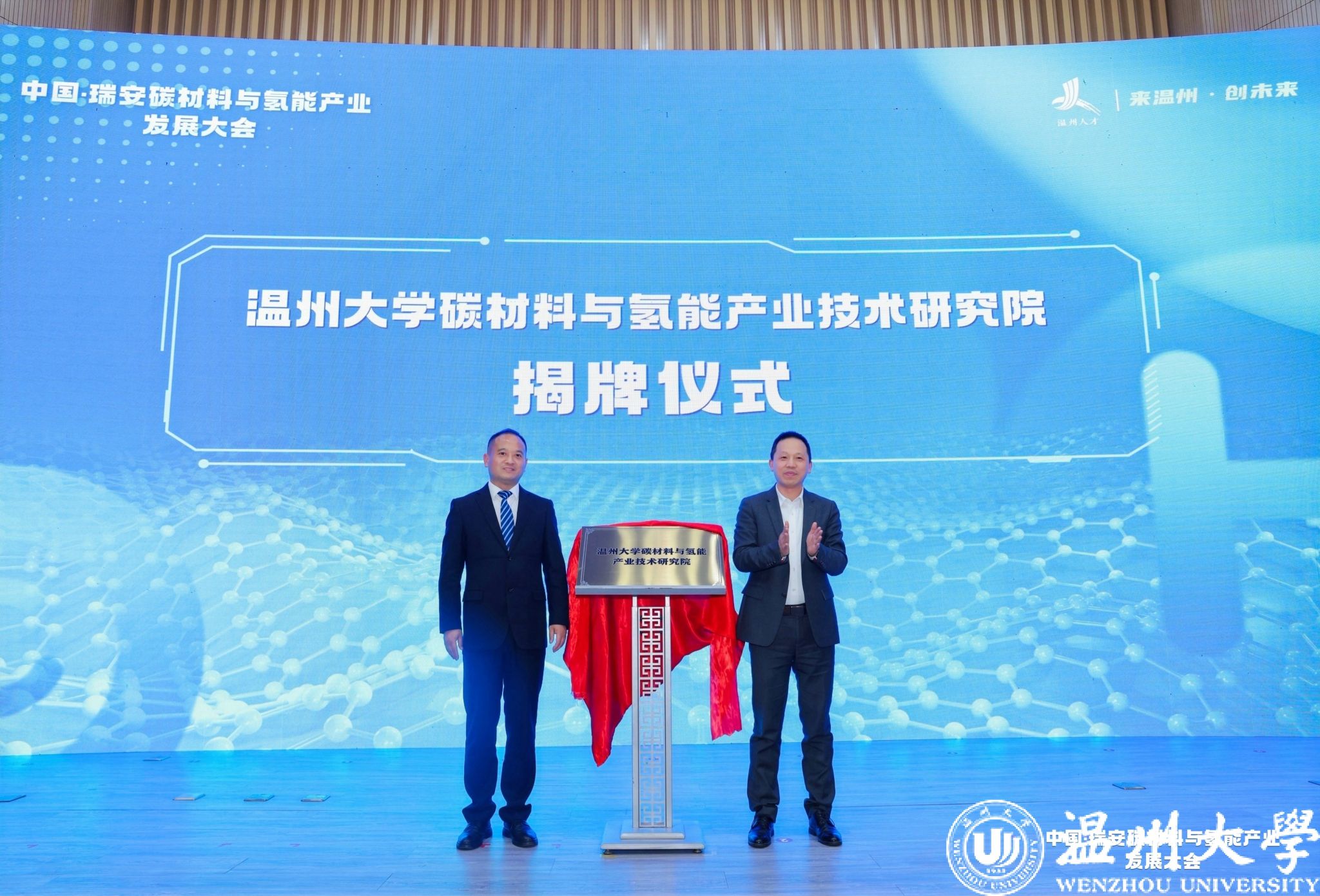 随后举行澳门银河官网 碳材料与氢能产业技术研究院的揭牌仪式。未来研究院将以新型碳材料和氢能产业化研发、构建国际创新高地为目标,对接全球资源,建设“高、精、尖”碳材料及氢能产业领域的研究院,助推温州打造碳氢产业集群。