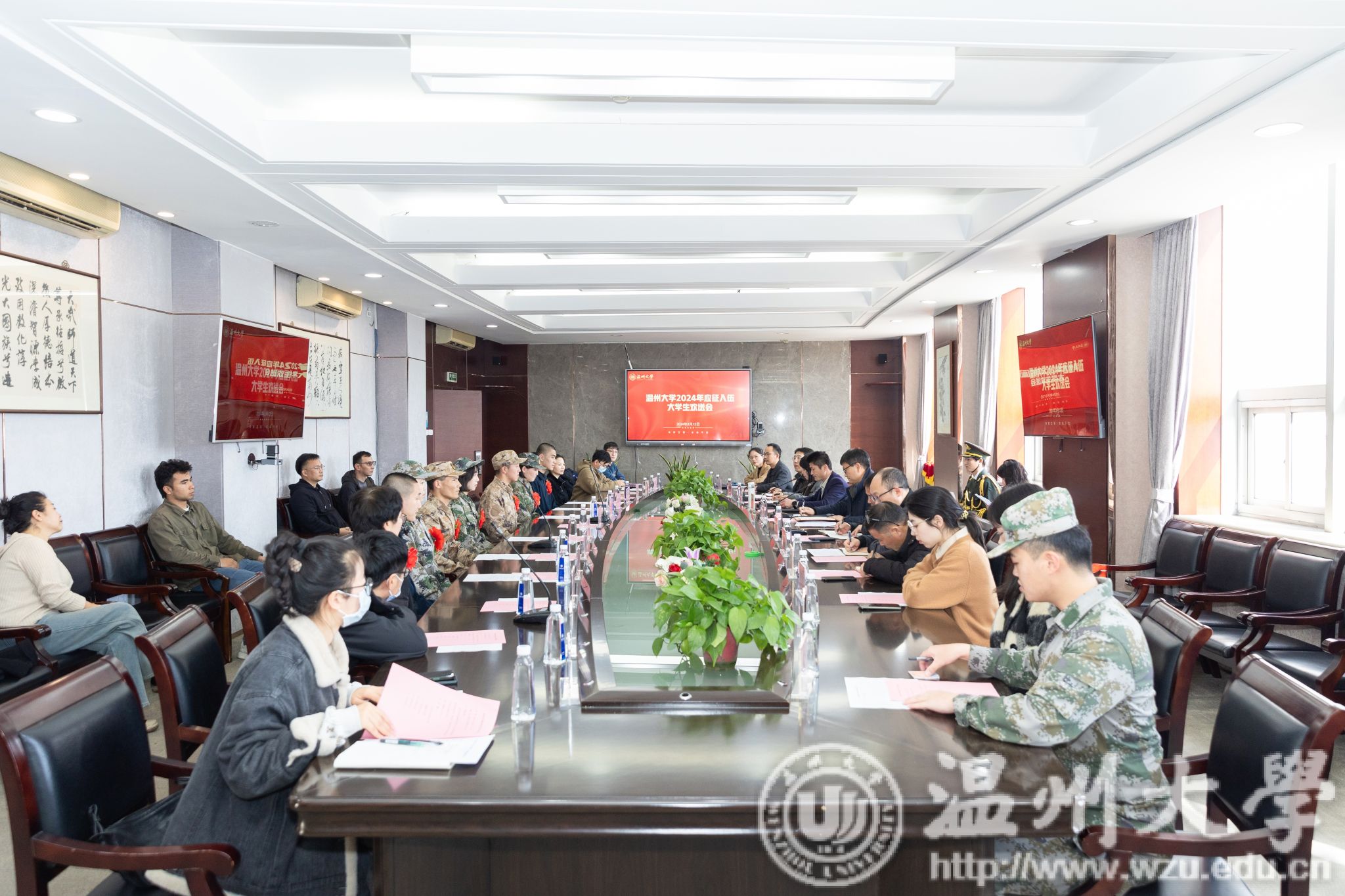 3月12日下午,澳门银河官网 2024年大学生应征入伍欢送会举行。校党委副书记庄兴忠出席。学工部、相关学院负责人、辅导员和入伍学生、家长代表、退役大学生红锋连代表齐聚一堂,共同见证这一光荣时刻。
