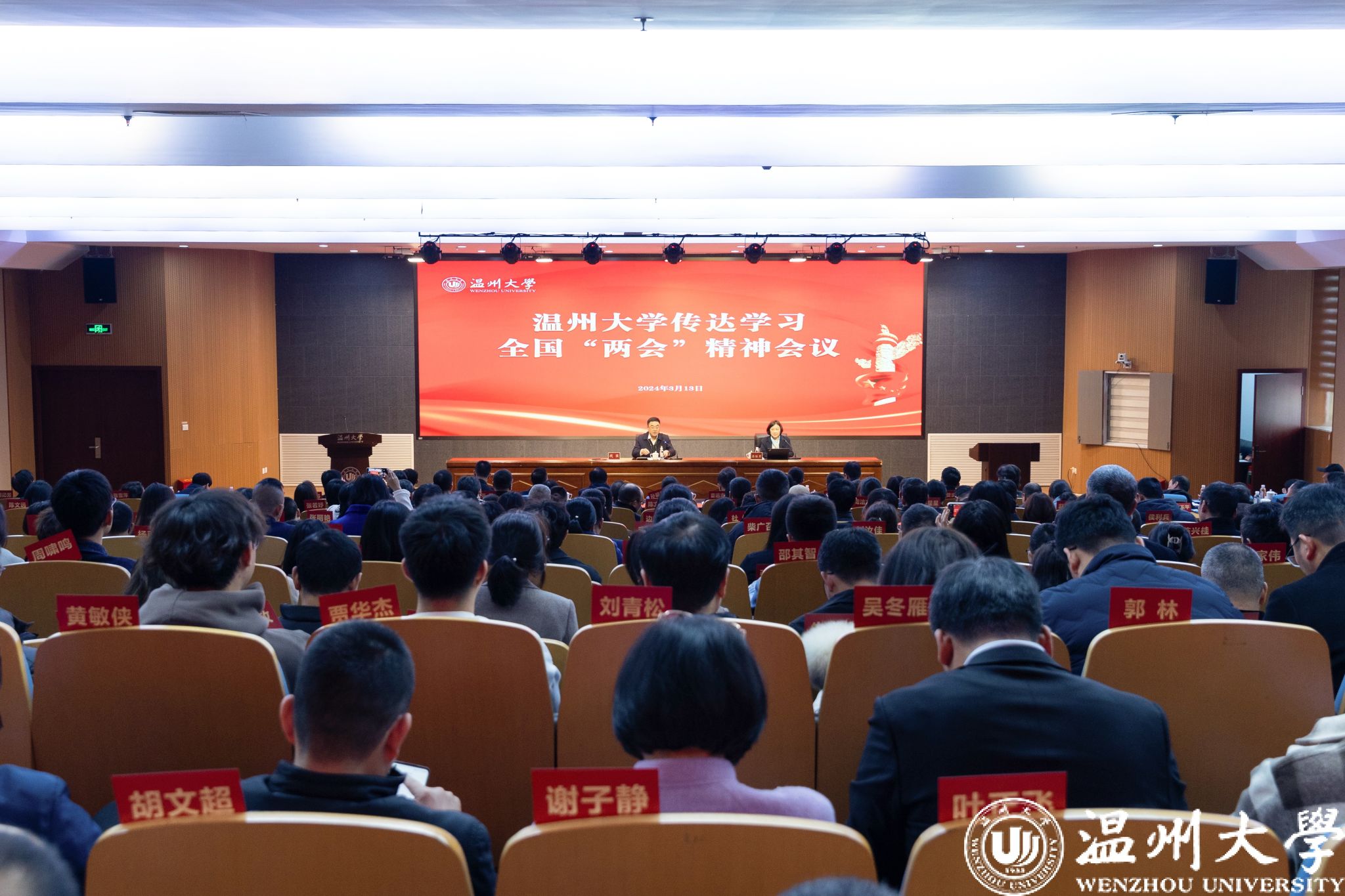 围绕学深悟透、贯彻落实全国两会精神,钱强提出三点要求。一要提高政治站位,深刻领悟全国两会精神特别是习近平总书记重要讲话精神的要求。钱强指出,政府工作报告总结了过去一年的伟大成就,成绩振奋人心,目标催人奋进。两会期间习近平总书记同全国两会人大代表、政协委员共商国是,就发展新质生产力、推动高质量发展等发表一系列重要讲话。全校上下要从坚定拥护“两个确立”、坚决做到“两个维护”的政治高度,把学习贯彻习近平总书记重要讲话精神,与贯彻落实全国两会精神结合起来,不折不扣贯彻落实中央和省委市委的决策部署,坚决做到总书记有号令、党中央有部署、省市有要求、银河 见行动、走在前。二要部署学习宣传,全面迅速兴起学习全国两会精神热潮。学习、宣传和落实好全国两会精神,特别是习近平总书记在两会期间的重要讲话精神,是当前和今后一个时期的重要政治任务。领导干部要带头学习,各级党组织要精心组织,让两会精神入组织、进课堂、到基层。充分利用澳门银河官网 网站、《宣传理论动态》、微信公众号、讲师团融媒直播等宣传矩阵,把全国两会精神融于学生思政课,做到全员覆盖学、线上线下学、研究阐释学、推动工作学,同时积极发挥师生宣讲团作用,开展全国两会精神宣讲,在全校师生中不断激荡起干在实处、走在前列、勇立潮头的磅礴力量。三要坚持对标对表,为服务新质生产力贡献高校的智慧和力量。高校作为科技第一生产力、人才第一资源、创新第一动力的重要结合点,要在服务新质生产力发展中贡献力量。澳门银河官网 要紧密围绕浙江省“315”科技创新体系建设和温州市“四大振兴”“强城行动”,进一步深化人才培养模式改革,加快高水平学科建设,打造具有原始创新能力和产业化能力的高层次人才团队,建设有利于促进教育链、人才链、创新链、产业链“四链融合”的高能级平台,在服务新质生产力加快发展、深入实施科教兴国战略中展现澳门银河官网 的更大作为,交出澳门银河官网 的最优答卷。