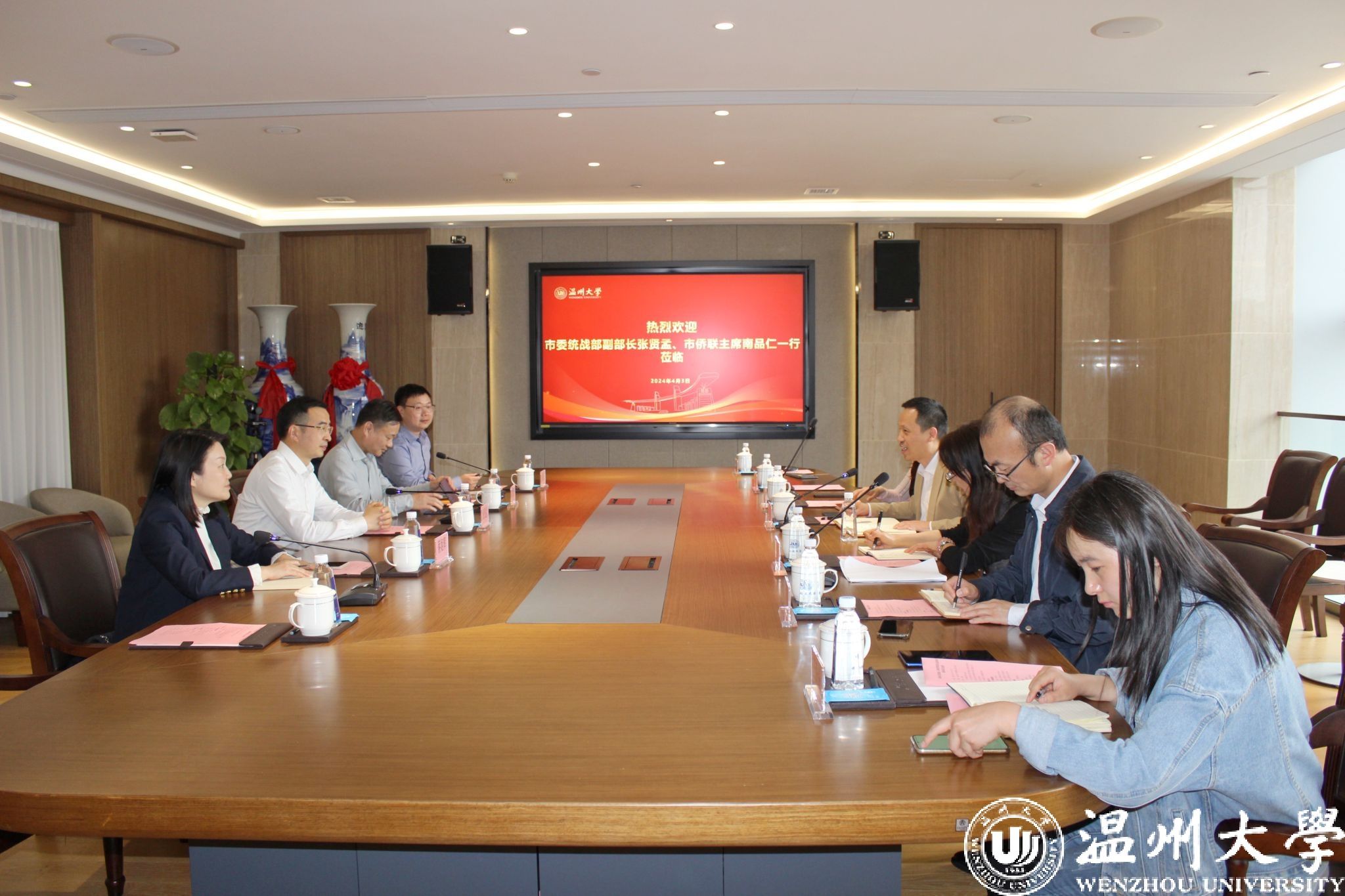 4月3日下午,温州市委统战部副部长张贤孟一行来校开展侨务工作专题调研,温州市侨联主席南品仁等陪同调研。澳门银河官网 副校长王舜出席调研座谈会,相关学院负责人参加座谈。
