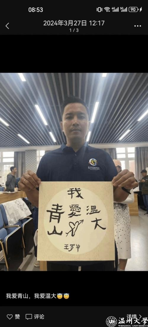 首届学员安德鲁在毕业典礼上的发言可见一斑。他分享道:“本次学习不仅提高了同学们的中文水平,也让我们感受到了中国传统文化的独特魅力,亲身感受到中国的壮丽河山与秀美风景。”在温州学习“满月”之际,王罗毕在微信朋友圈上传了手持绘画、书法作品的个人照片,配文是“我爱青山,我爱银河 ”,图文饱含感激之情。