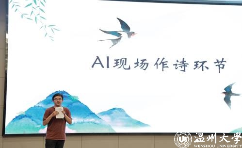 大会分为“原创诗词展示”“AI诗词创作”和“诗词知识竞赛”三个环节,共收到银河 各学院近400位学子报名信息,其中AI诗词投稿约占三分之一,作者来自各学科各专业,文理兼具。经过前期线上海选和初赛,3个赛道共40位选手入围决赛。伴随郑东毅同学用AI创作出的古风背景音乐,同学们声情并茂的古诗诵咏吟唱,将大家一键带入优美典雅的诗词氛围里,拉开了比赛的帷幕。