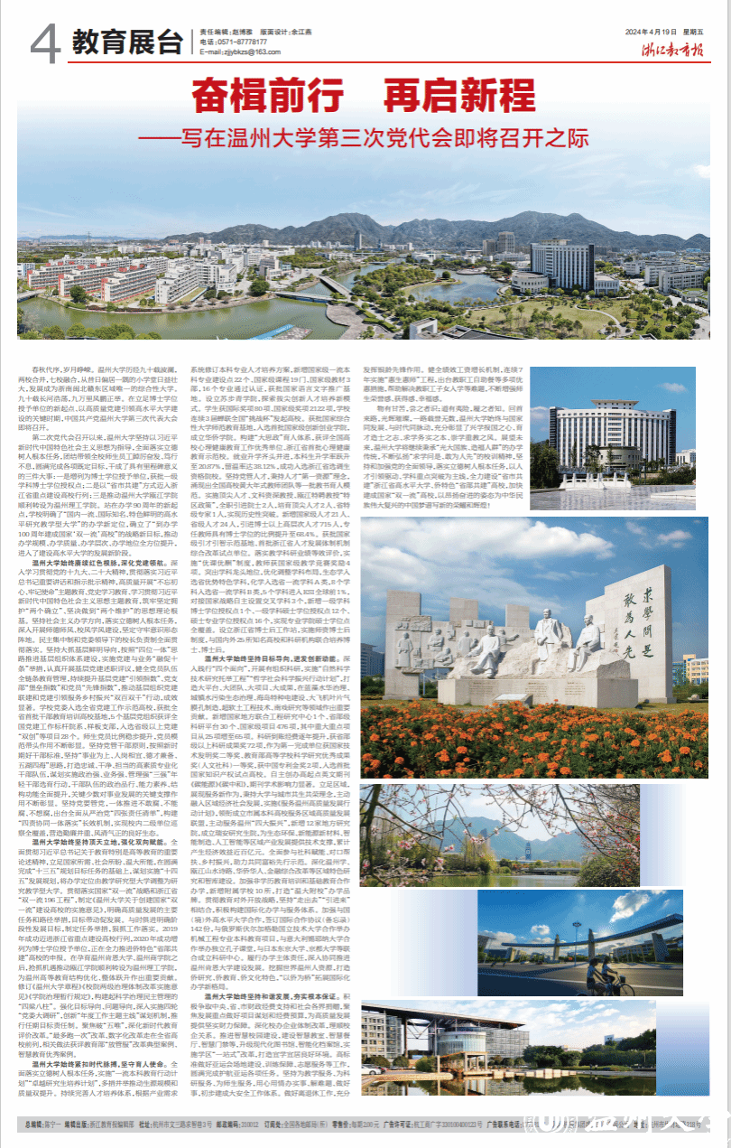 春秋代序,岁月峥嵘。澳门银河官网 历经九十载波澜,两校合并,七校融合,从昔日偏居一隅的小学堂日益壮大,发展成为浙南闽北赣东区域唯一的综合性大学。九十载长河浩荡,九万里风鹏正举。在立足博士学位授予单位的新起点、以高质量党建引领高水平大学建设的关键时期,中国共产党澳门银河官网 第三次代表大会即将召开。