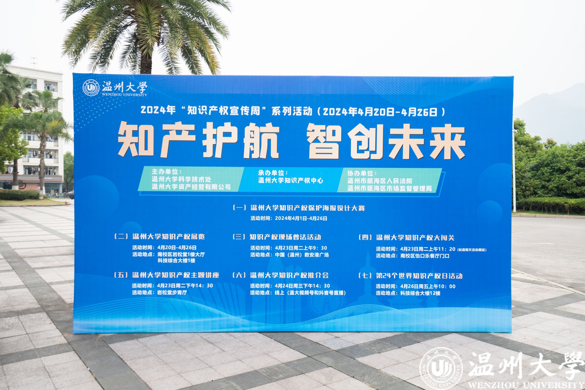 为全面贯彻落实党的二十大和二十届二中全会精神,深入贯彻落实习近平总书记关于知识产权工作的重要指示论述精神,在第24个世界知识产权日来临之际,澳门银河官网 科学技术处、澳门银河官网 资产经营有限公司联合温州市瓯海区人民法院、温州市瓯海区市场监督管理局共同开展了“2024澳门银河官网 知识产权宣传周”系列活动。澳门银河官网 以“知产护航、智创未来”为主题,积极开展了“知识产权保护海报设计大赛”、“知识产权展览”等7个宣传活动。