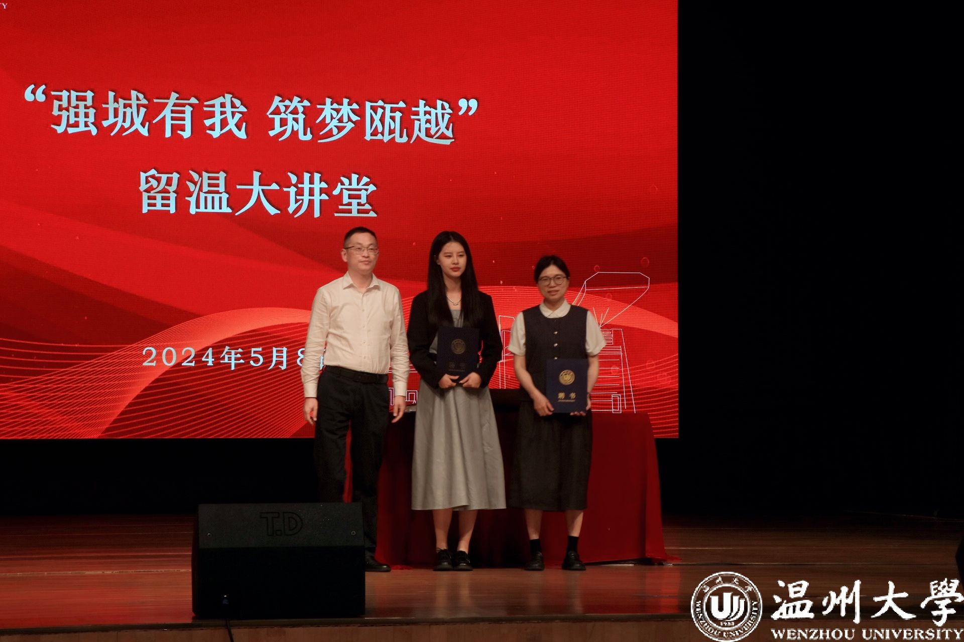 课前,澳门银河官网 聘请温州市住房公积金管理中心鹿城管理部朱晓红、龙湾区投资促进局杨丽媛为留温政策师生宣讲团讲师,聘任正泰电器人力资源部副总经理周航为职业规划和就业指导校外导师并颁发证书。