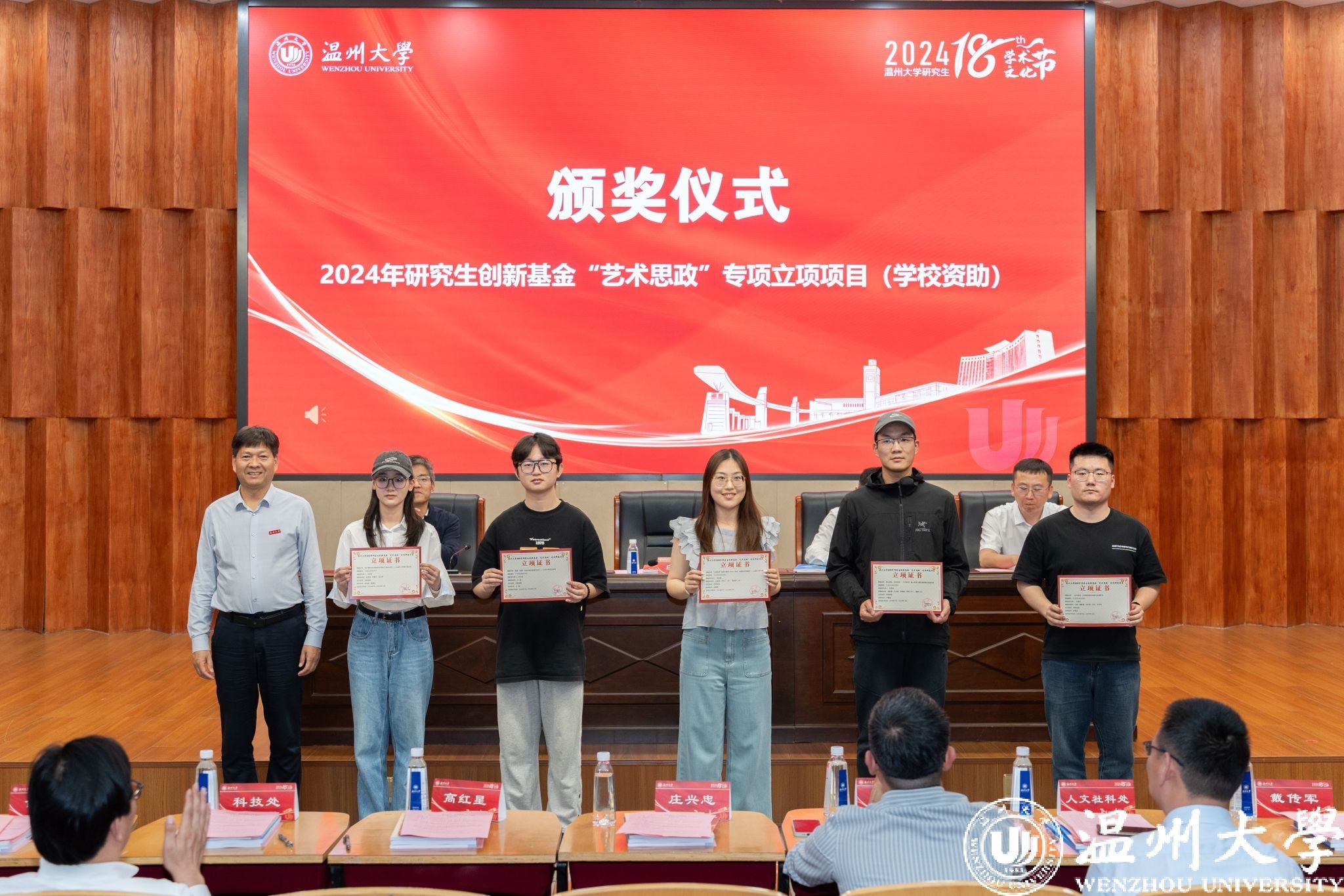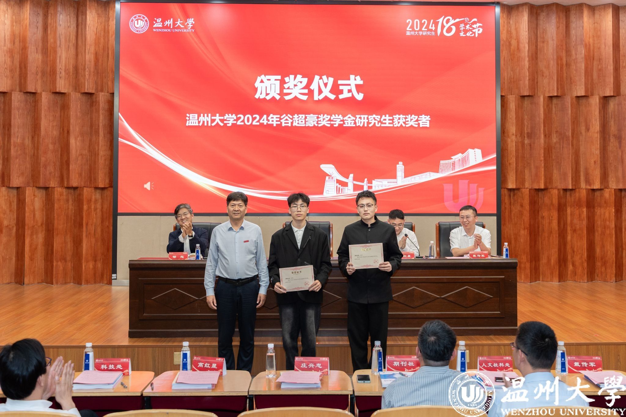 庄兴忠为获奖研究生团队及个人颁奖。