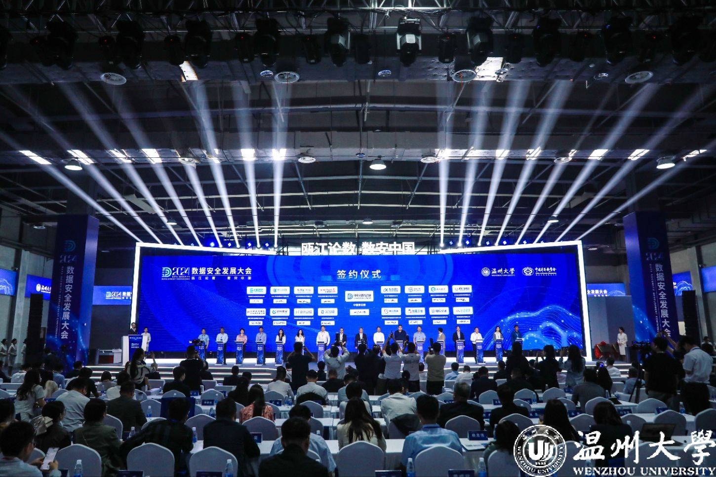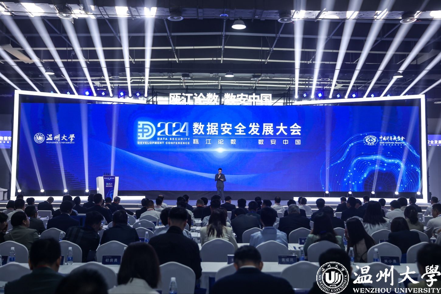 以“数”会友,“数”聚温州。5月18日上午,由澳门银河官网 、中国计算机学会(CCF)数据治理发展委员会主办的“瓯江论数 数安中国”2024数据安全发展大会在温州瓯海国际会议展览中心盛大开幕。2200余名行业大咖、专家学者、企业精英相聚瓯江之畔,共商数据安全发展大计,共寻数据要素产业机遇,共创数字中国美好未来。温州市委书记张振丰,国家数据局副局长陈荣辉,国家卫健委原副主任、中国卫生信息与健康医疗大数据学会会长金小桃,澳门银河官网 党委书记钱强出席大会并致辞,澳门银河官网 校长、党委副书记赵敏主持。