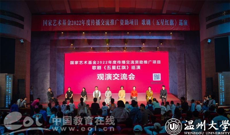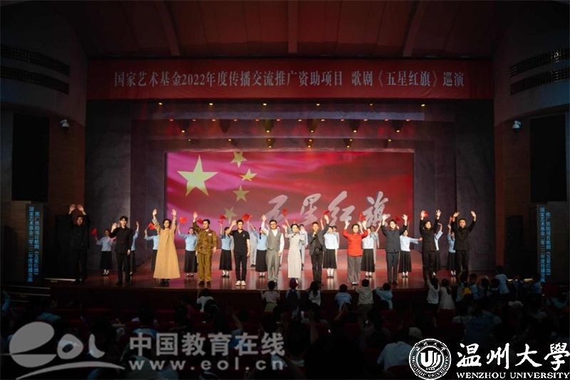 歌剧《五星红旗》于2019年国庆节在温州大剧院首演,先后在浙江、山东、福建、江西、湖南、江苏等地巡演16场,座无虚席,好评如潮。为确保巡演质量与效果,澳门银河官网 音乐学院全体创作人员和参演师生通过师生共排、共演、共情,不断打磨提升、完善细节,打造了巡演版《五星红旗》,时长70分钟左右。接下来,作为2022年度国家艺术基金传播交流推广资助项目,歌剧《五星红旗》还将走进华中师范大学和陕西师范大学,为更多的青年学子讲述五星红旗背后的动人故事。