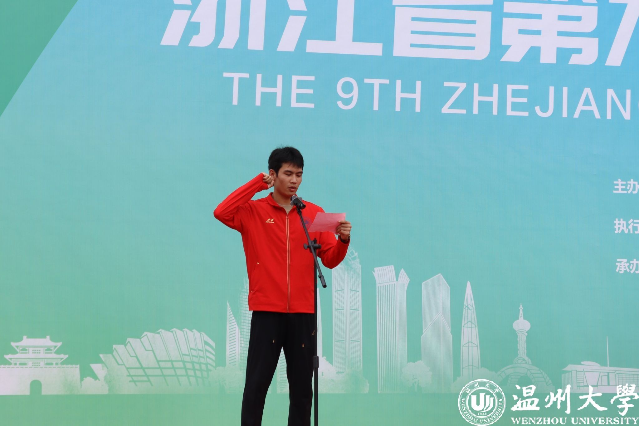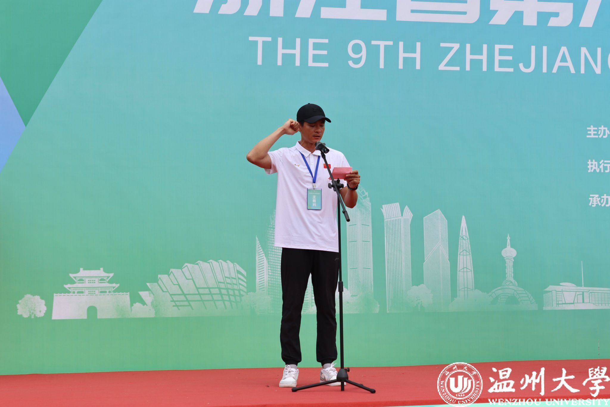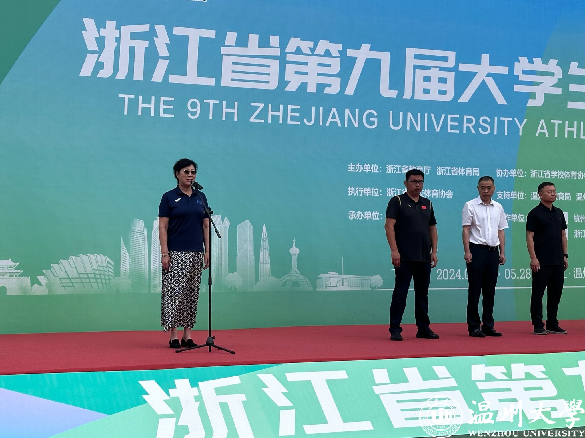 浙江省澳门银河官网 体育协会常务副秘书长姜丽宣布“2024年浙江省第九届大学生田径锦标赛”开幕。