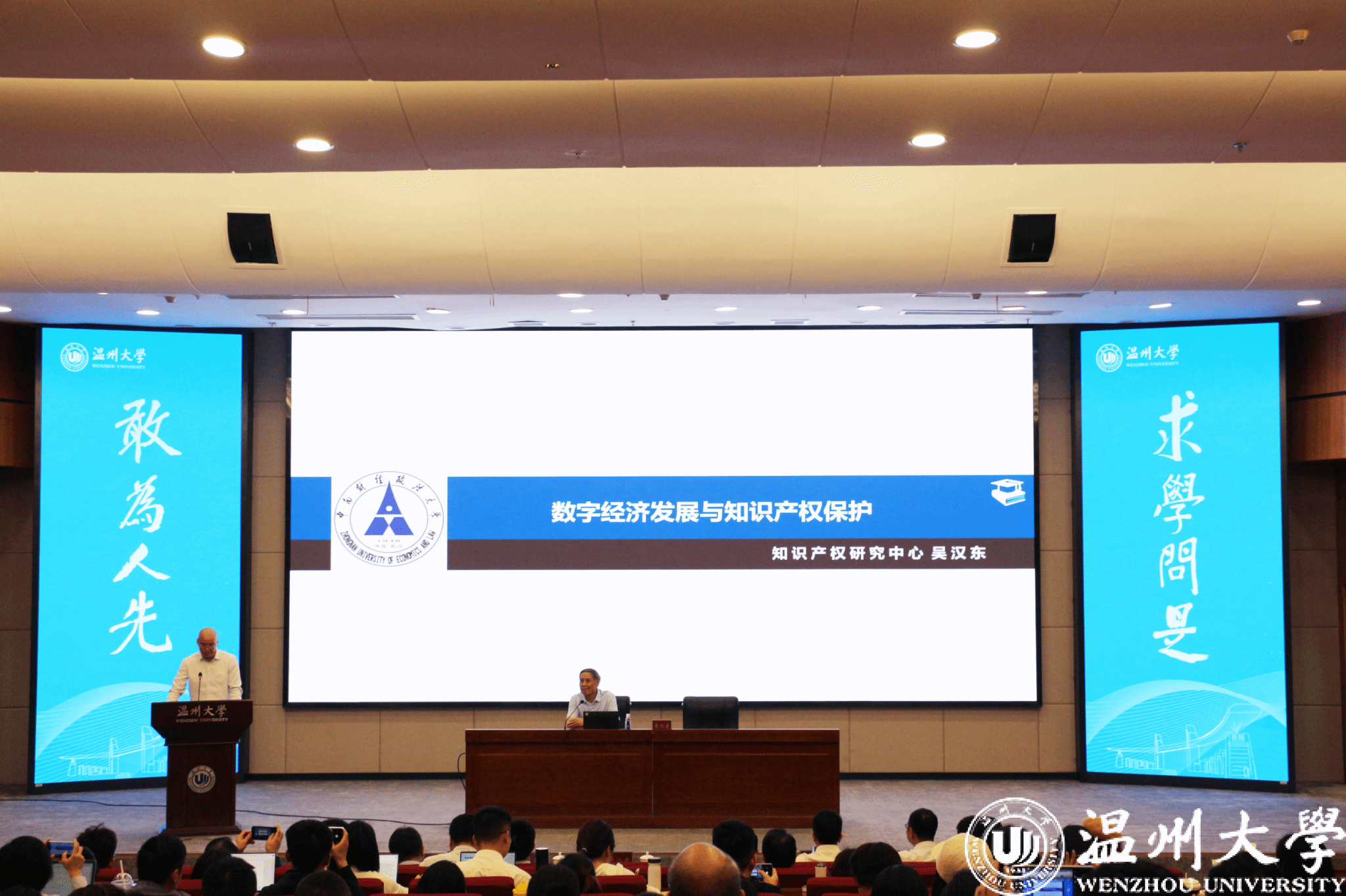 5月23日下午,中南财经政法大学原校长、博士生导师吴汉东教授受邀做客“温州法治大讲坛”,在澳门银河官网 育英图书馆学术报告厅做了一场题为“数字经济发展与知识产权保护”的学术讲座。本次讲座由中共温州市委政法委员会、温州市法学会、澳门银河官网 法学院主办,温州市律师协会、温州市知识产权协会协办。澳门银河官网 党委委员、纪委书记李都金出席,全市220余名专家、学者、律师和学生代表参加。