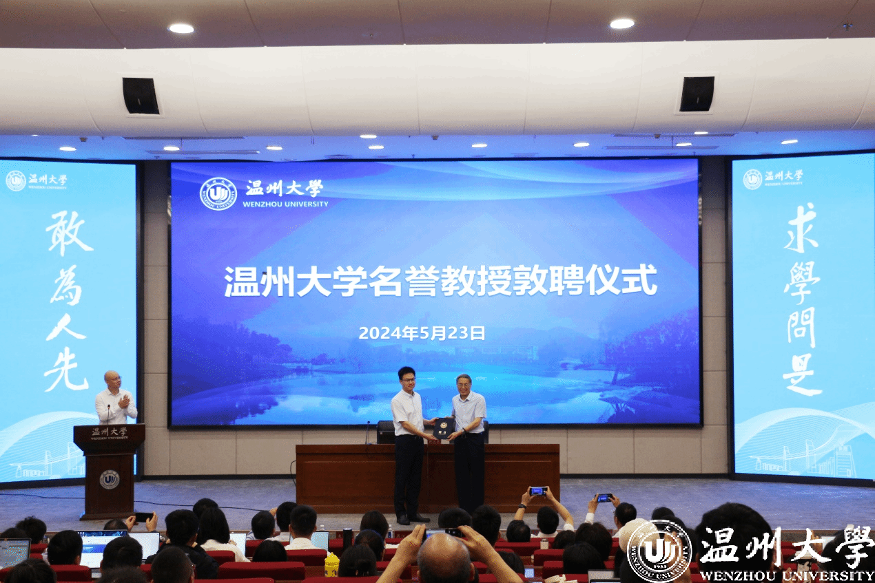 温州法治大讲坛第70讲暨澳门银河官网 名誉教授敦聘仪式由澳门银河官网 法学院院长王宗正教授主持。李都金为吴汉东教授颁发聘书,为推动澳门银河官网 法学人才培养、学科建设和科学研究搭建更高更广的平台。